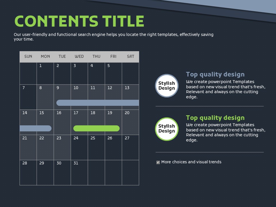 The Free Green Point Template is a stylish 6-slide mini set featuring an elegant green and grey color scheme that enhances presentation appeal. Each slide is intuitively designed, making it easy to convey your messages effectively while being adaptable for various presentation topics. This quickly applicable template brings a fresh touch to your presentation, showcasing impressive design quality despite being free. Revitalize your presentations with this remarkable template!
