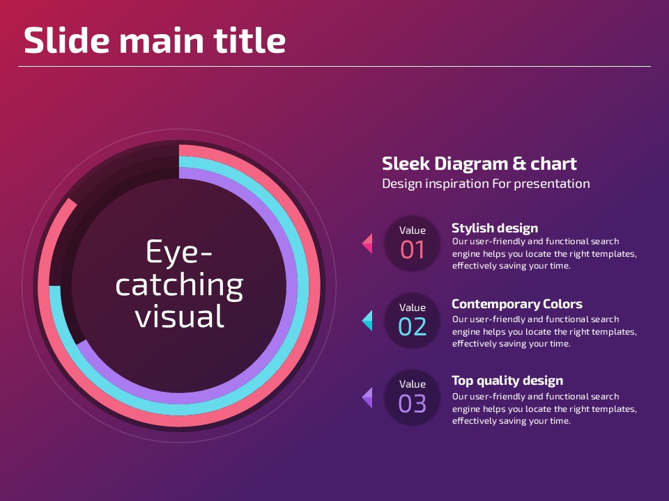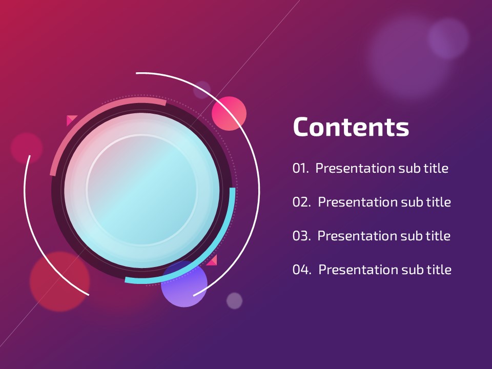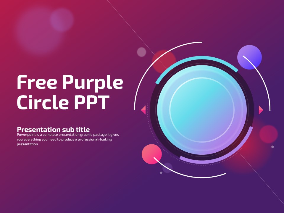 This Free Purple Circle Template features a stylish design with eye-catching hues perfectly tailored for your presentation needs. Each slide provides a clean layout optimized for delivering subtitles and content effectively. The visual elements are designed to grab the audience's attention while clearly conveying information. Ideal for business meetings and presentations, this template employs circular design elements for visual cohesion, leaving a professional impression.