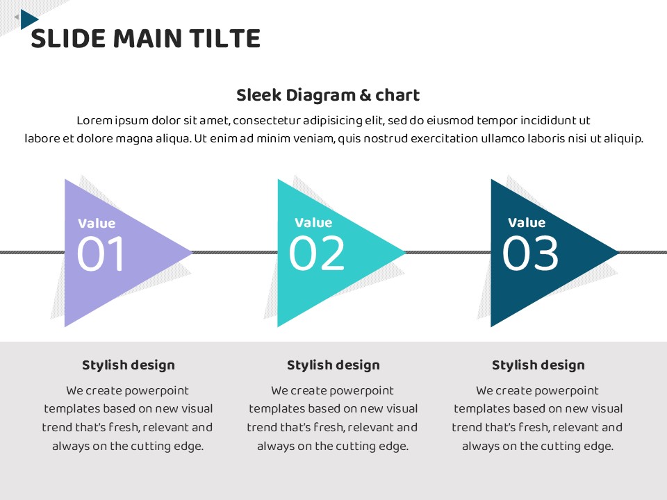 This free triangle template harmoniously combines purple and teal, providing visual elements that elevate the quality of presentations. Its clean layout and unique design effectively convey ideas, making it easily applicable in various contexts. With a quick setup, this template adds practicality and is designed to enhance your presentation materials. Utilize this template to beautifully highlight your messages.