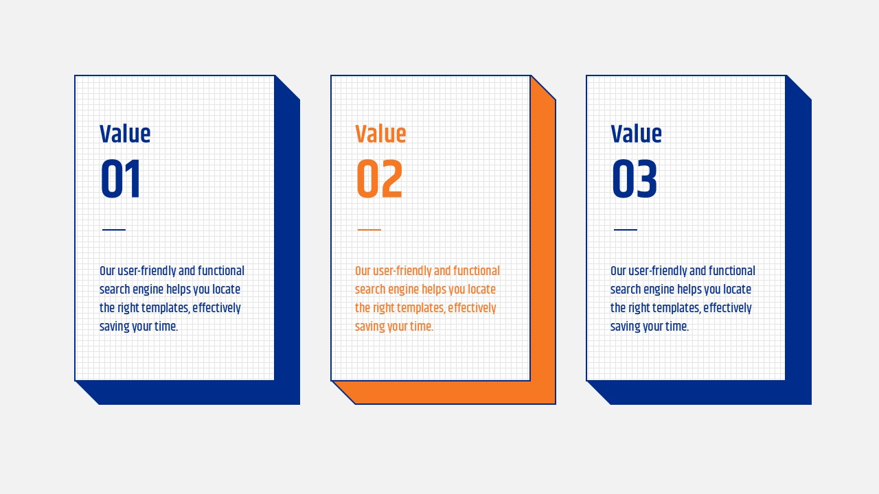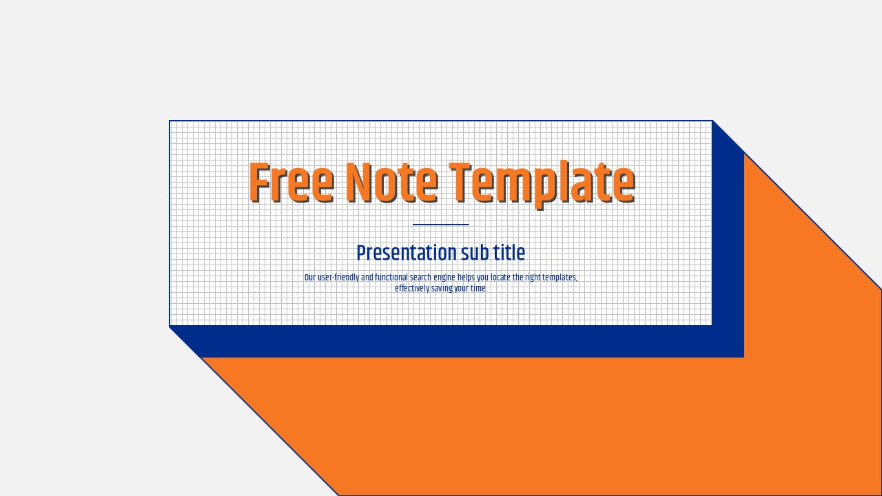 The Free Note Template consists of 5 slides, offering an intuitive approach to your presentations. With a harmonious design of blue and orange, each slide features a clean grid background and clear text arrangement to effectively convey information. It is practical for various uses, including topic introductions, content summaries, charts, and conclusions. This free template is an optimal choice for quickly organizing your presentation.