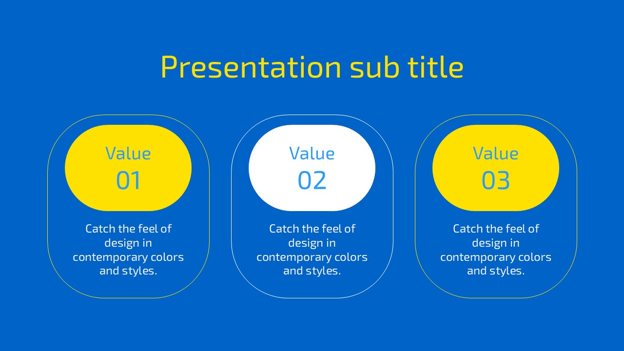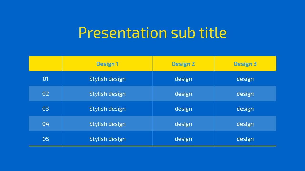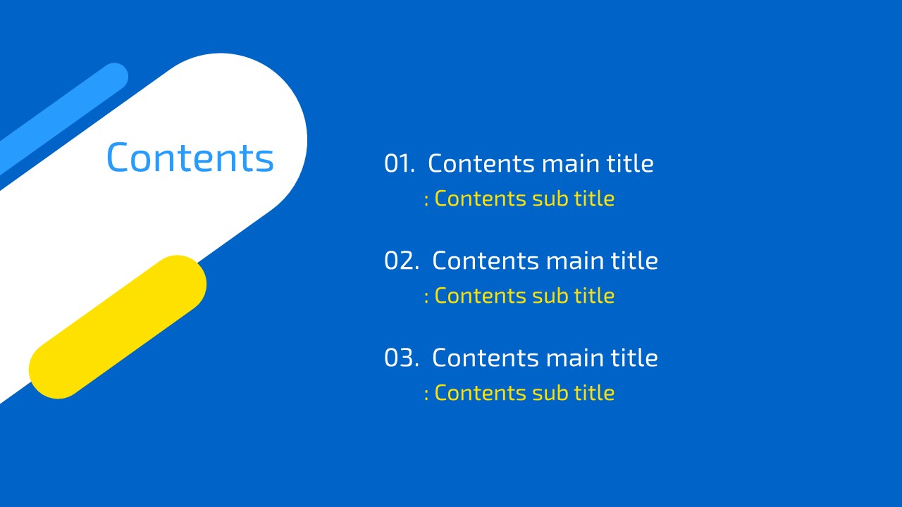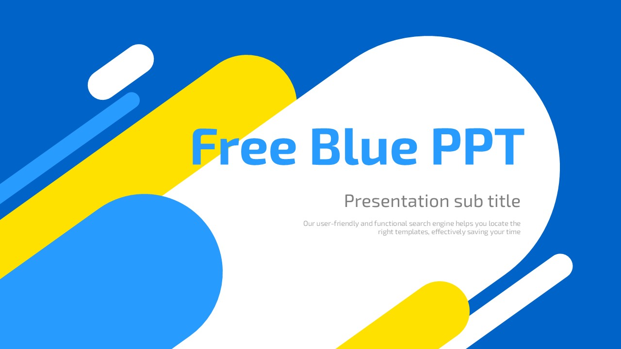 The Blue Free PowerPoint template boasts a modern and stylish design, consisting of 5 slides that are ready to use right away. Each slide features a clean layout and intuitive design that ensures optimal presentation effect. It includes various structured slides that can be flexibly utilized to fit your content, allowing for clear message delivery. Notably, the harmony of blue and yellow highlights the presentation, adding a touch of sophistication. Create an impressive presentation effortlessly with this quick-to-apply free template.