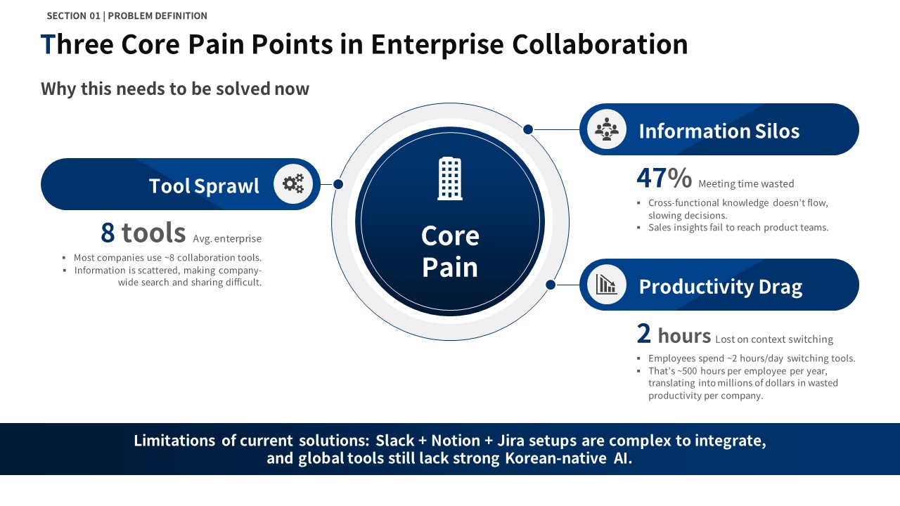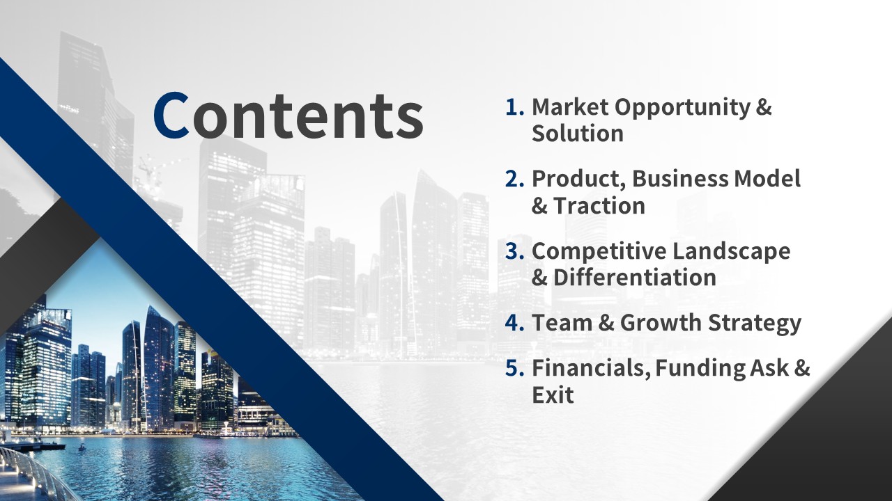 The navy blue and charcoal gray design gives the pitch deck an enterprise-grade visual standard from the first slide. All 30 slides are structured to walk an investment committee through market opportunity and solution, product and business model, competitive positioning, team and growth strategy, financial projections and unit economics, funding request, and exit scenarios — with no gaps that reviewers can flag. Built-in visuals including KPI summary cards, funnel diagrams, competitor comparison tables, scenario analysis, and a risk mitigation matrix give your investor presentation the data density and clarity that internal review panels expect. The result is a full IR deck you can adapt and submit without rebuilding the structure from scratch.