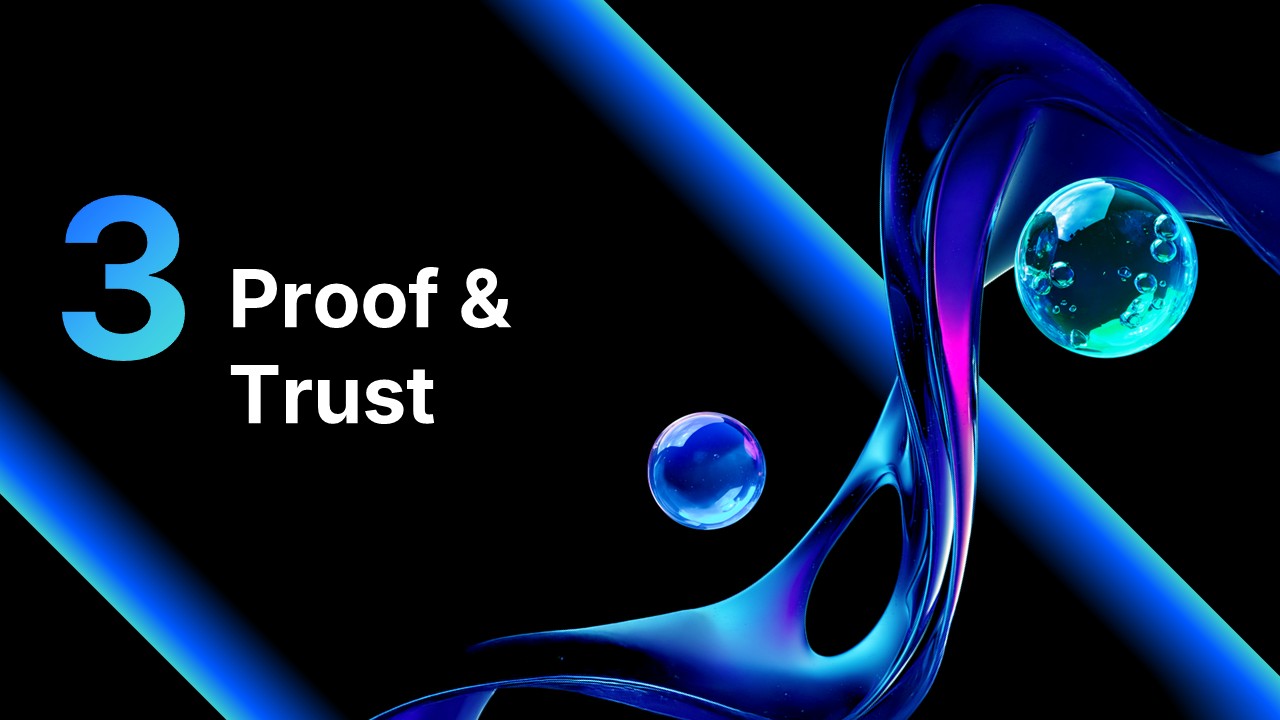 This company profile presentation template spans 20 slides across a 4-part persuasion framework: Why (empathy & problem framing) → How (solution & differentiation) → Proof (validation & trust) → Action (roadmap & next steps). Built on a premium tech design system in electric blue and black, the deck includes KPI metric cards, bubble cluster charts, a 4-step arrow timeline, a concentric-circle impact diagram, team leadership profiles, and success case slides — all production-ready with no additional design work required.