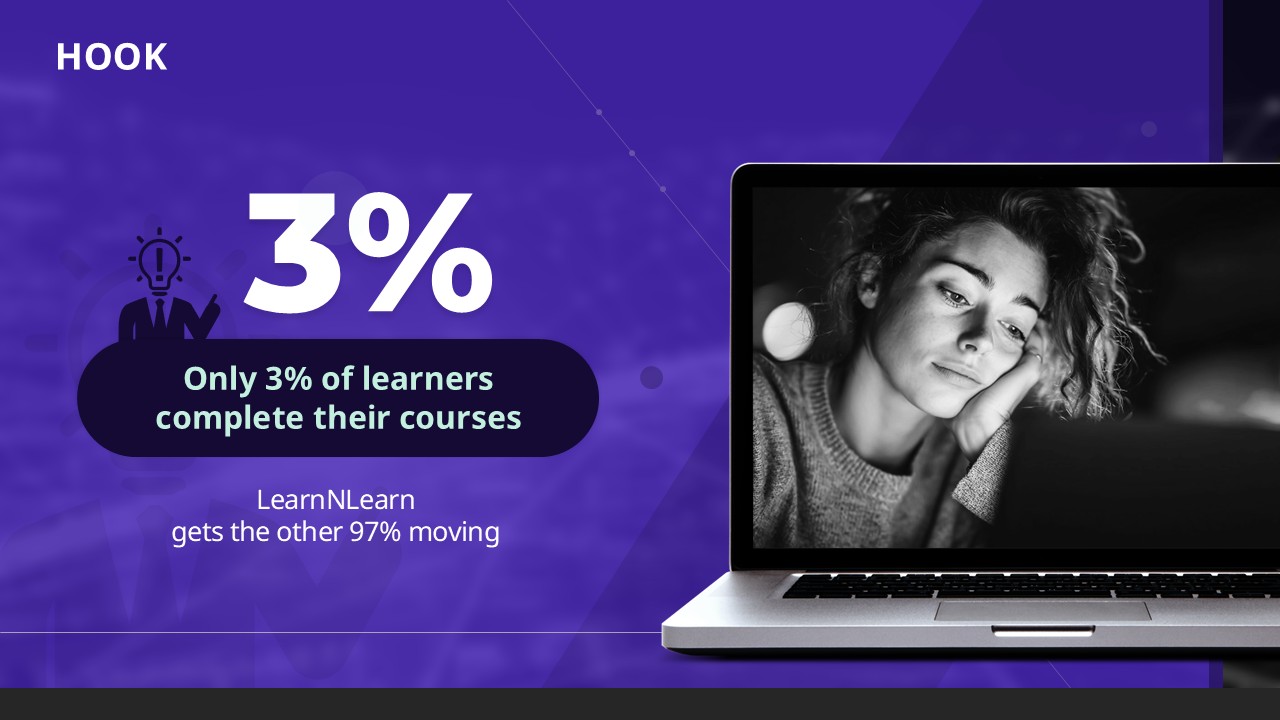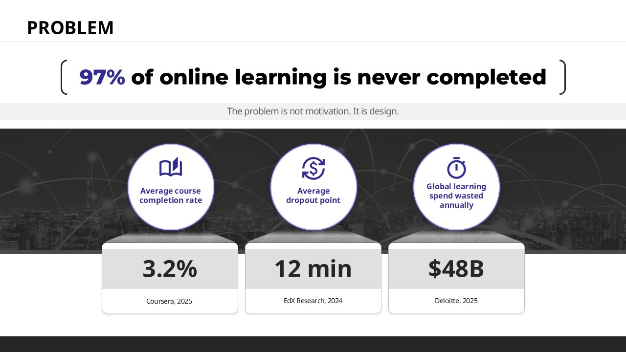 Most founders make the same mistake when converting a business plan into a pitch deck: they keep the 'Company → Team → Product → Market' order that feels natural to the presenter but works against the investor's mental sequence of questions. If you've never built an IR deck from scratch, structuring a full Hook-to-Ask narrative — where each slide answers exactly one investor question in the right order — takes time and experience most first-time founders don't have. This pitch deck template packages the complete 6-slide investor presentation structure — Hook, Problem, Solution, Why Us, Traction, The Ask — into a dark premium tech design you can adapt the night before a funding meeting.