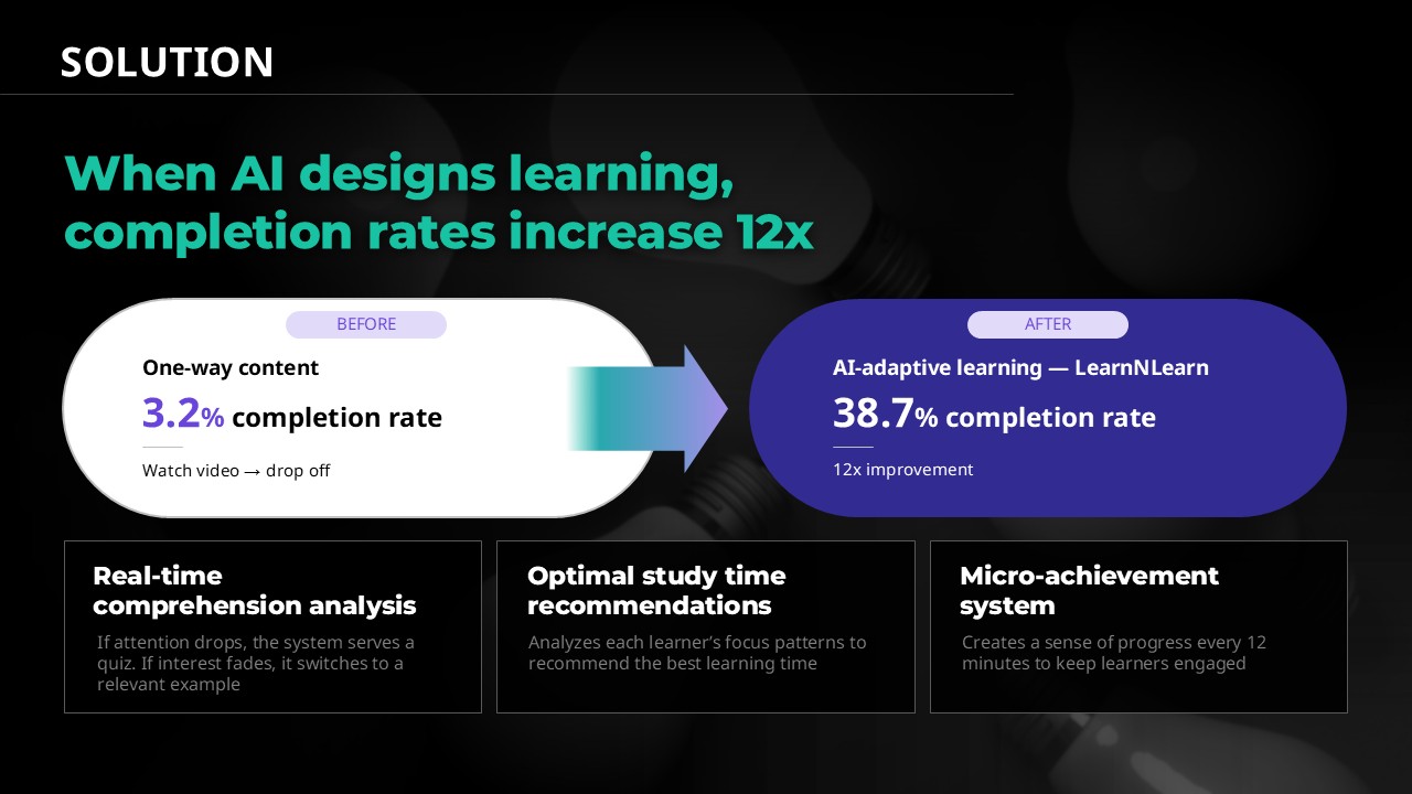 ① Founders preparing for Series A or B fundraising: Use the Hook slide to lead with a market shock statistic and the Traction slide to present PMF evidence clearly. ② Teams converting an existing business plan deck into an IR-ready format: Use the 6-step structure as a reordering guide to shift from presenter-centric to investor-centric flow. ③ Early-stage startups preparing for accelerator demo days: Use it as a compression framework to cut to the 6 slides that actually move an investor to a decision.