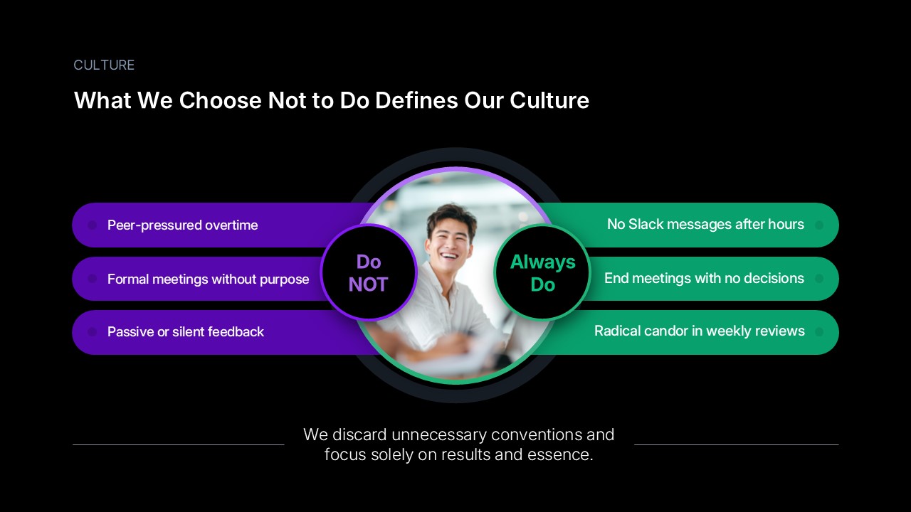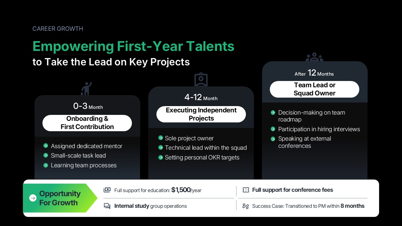 This template is designed for startup HR managers, hiring leads, and founders to communicate team culture, career growth structure, and company direction to prospective candidates and potential hires in a single recruitment presentation.