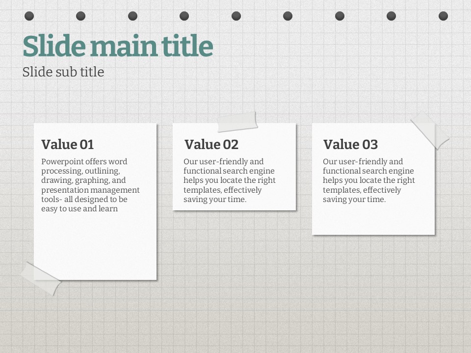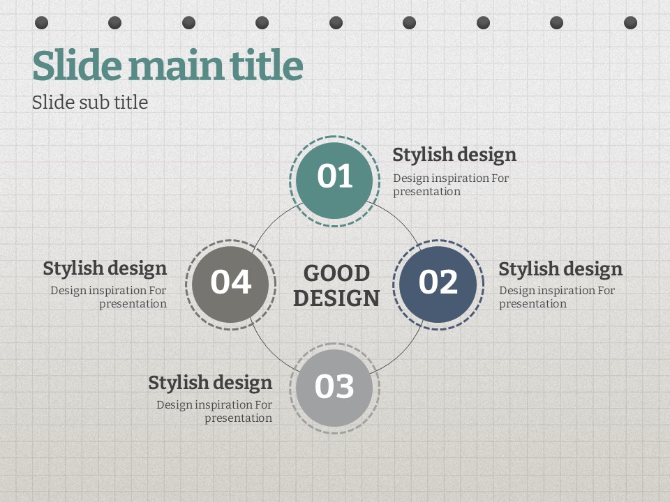 종이 노트 디자인의 무료 프레젠테이션 템플릿을 만나보세요. 총 6장의 슬라이드로 구성되어 있어 중요한 내용을 체계적으로 전달하는 데 최적화되어 있습니다. 청록색과 회색의 간결한 컬러 조합이 세련된 이미지를 연출하며, 각 슬라이드는 사용자의 필요에 맞춰 직관적으로 구성되어 있습니다. 미니멀리즘을 중시하는 현대적인 디자인 감각이 돋보이는 이 무료 템플릿을 통해 더욱 매력적인 발표를 준비해보세요.