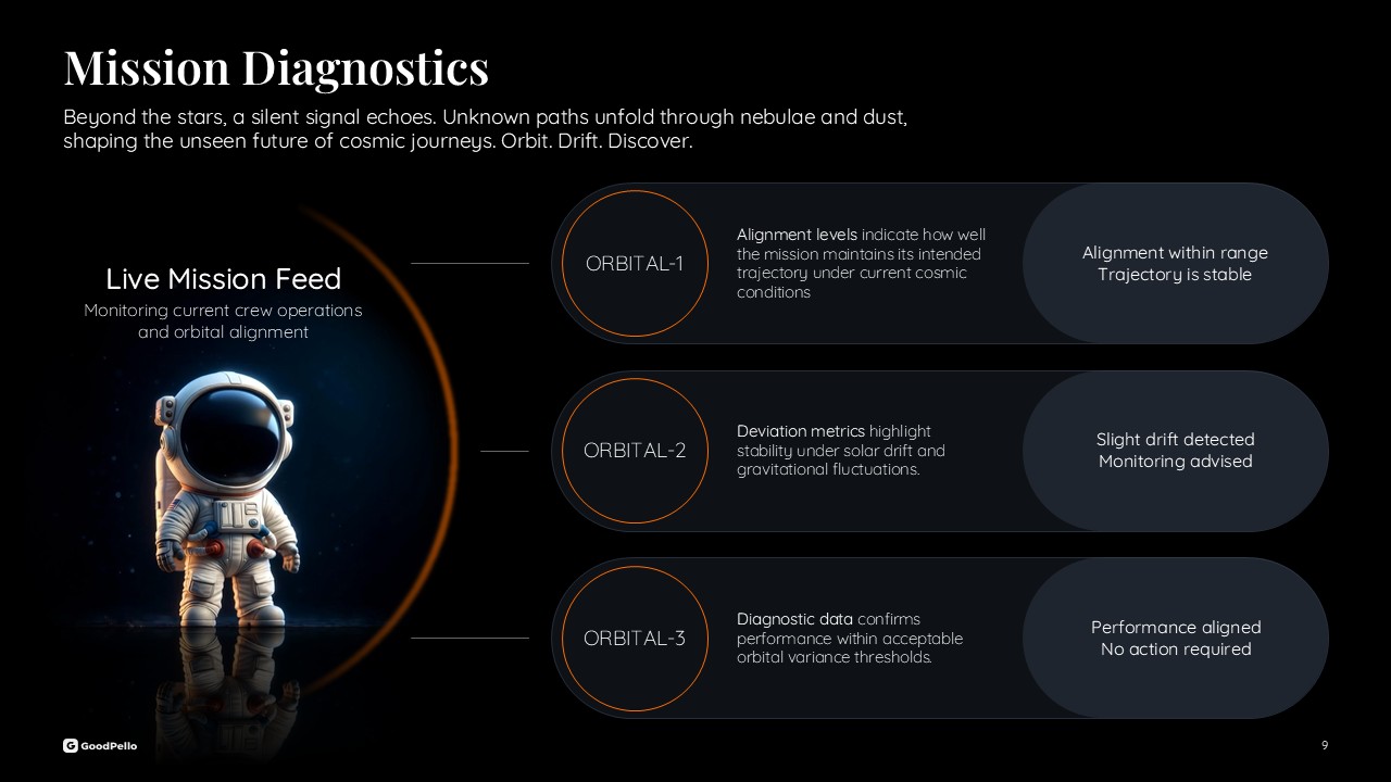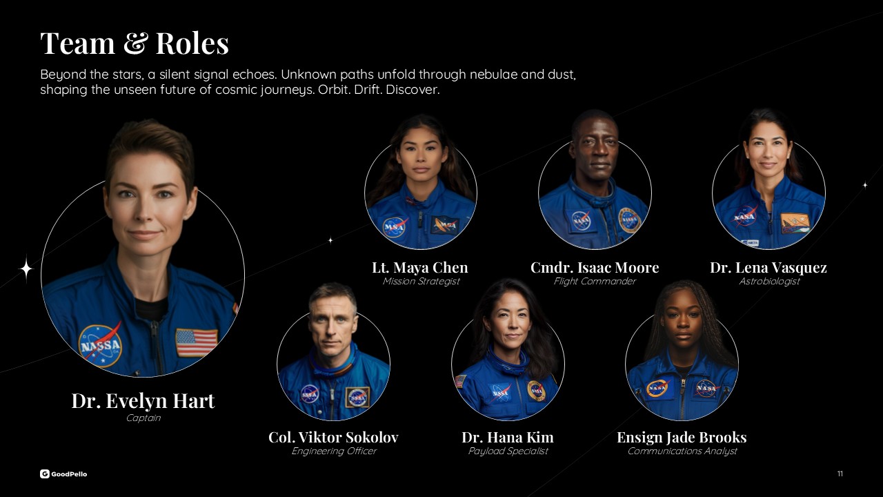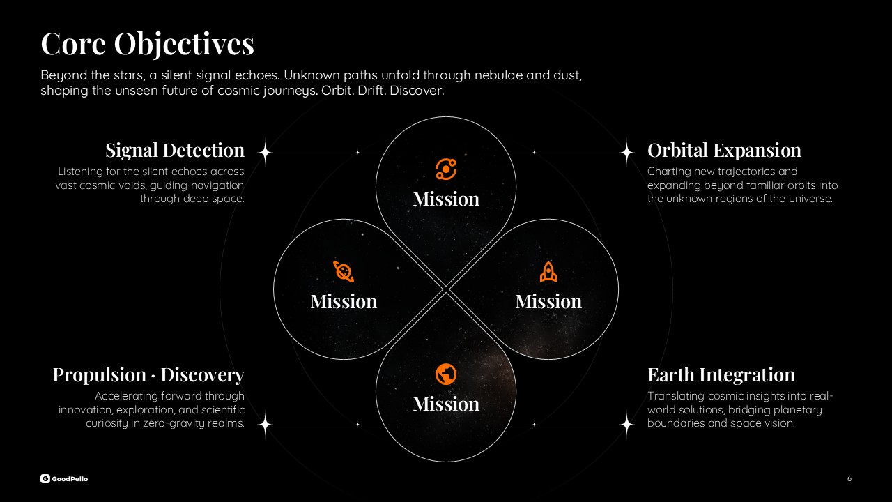 탐사 프로젝트 제안서, 기술 전시회, 과학 관련 세미나, 또는 크리에이티브 콘셉트 발표 등 다양한 분야에서 활용하기 적합합니다.