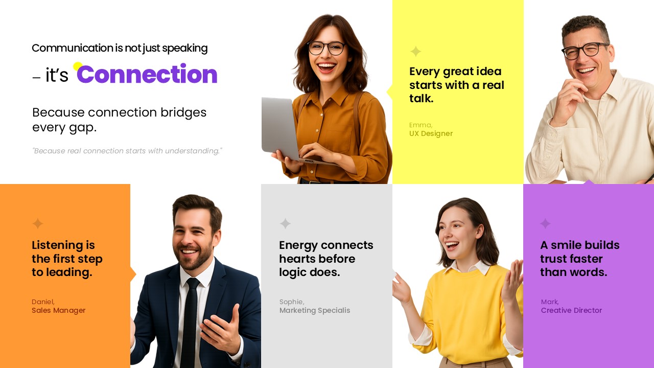 현대 비즈니스 환경에서 성공적인 소통을 위한 필수 전략들을 시각적으로 표현한 6개의 프리미엄 슬라이드는 기업 교육, 팀 워크숍, 전략 발표, IR 자료 제작에 즉시 활용 가능합니다. 각 슬라이드는 독립적으로도, 하나의 스토리로도 완벽하게 작동하도록 설계되었습니다.