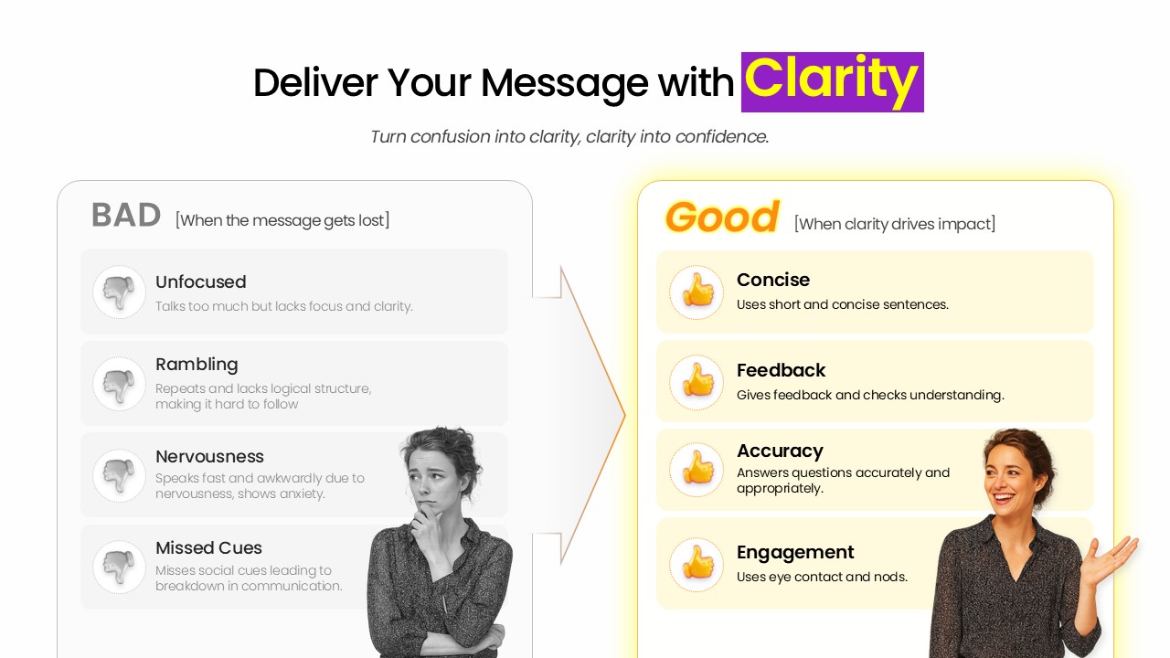 전문적인 비즈니스 커뮤니케이션에 필요한 핵심 요소를 하나의 템플릿 세트로 만나보세요. 명확한 메시지 전달(Clarity), 적극적인 경청(Active Listening), 원격 협업(Beyond Distance), 브랜드 정체성(Brand Credibility), 팀 연결성(Connection), 효과적인 프레젠테이션 기법까지 모든 것을 담았습니다.