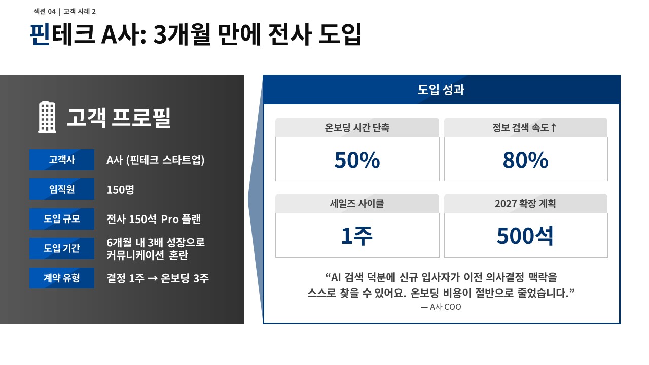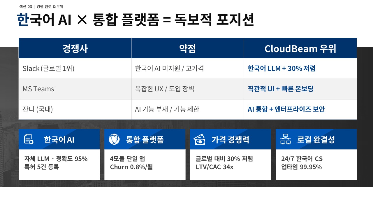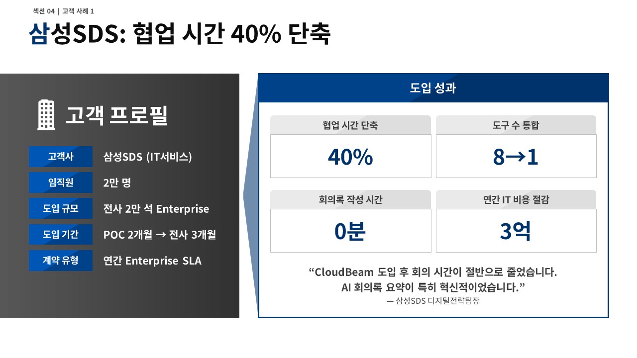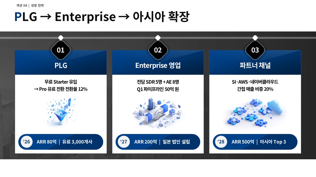 시리즈A 2차 미팅 이후 VC 심의위원회에 제출하는 발표 자료로 바로 활용할 수 있습니다. 발표자 없이 자료만으로 내부 검토를 통과해야 하는 상황, 재무 전망과 Exit 시나리오를 처음 구성해야 하는 스타트업, 투자자에게 리스크 대응 전략까지 제시해야 하는 B2B SaaS 기업에 최적화되어 있습니다.