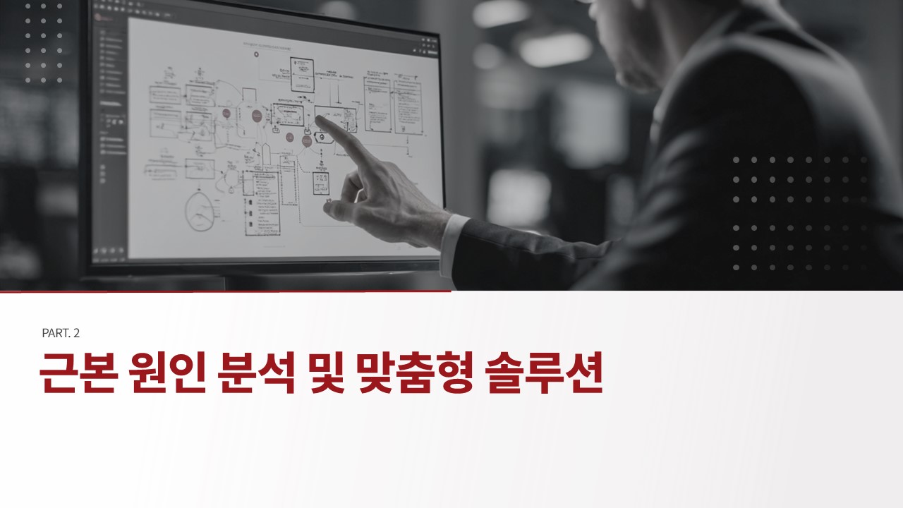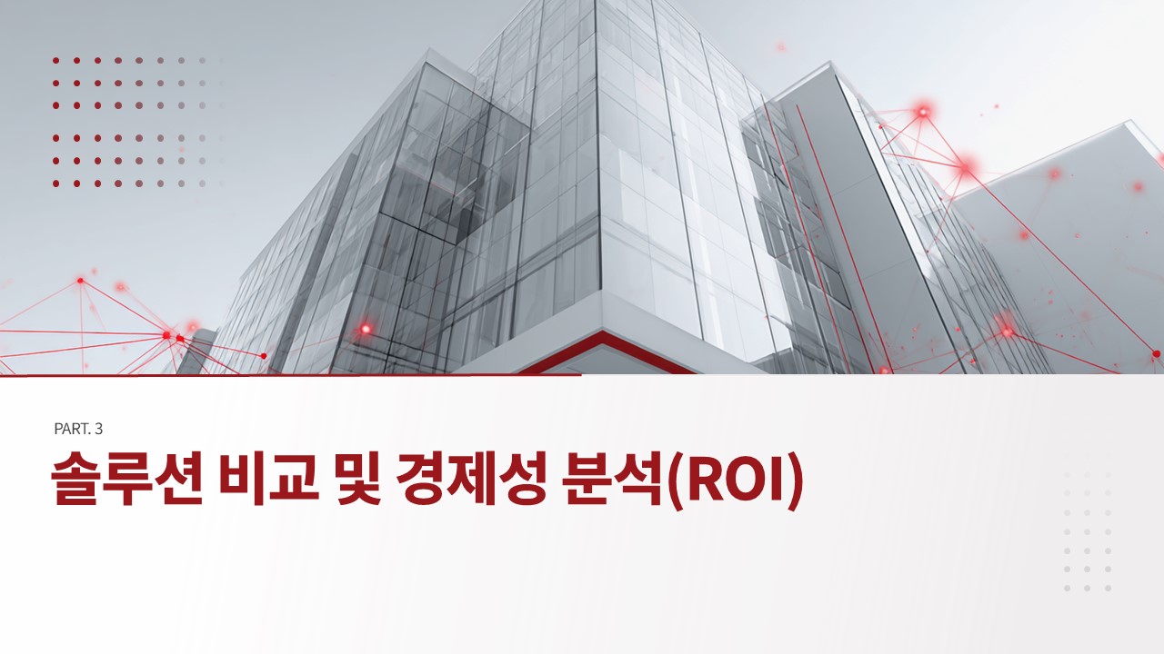 이 B2B 영업 제안서 파워포인트 템플릿은 총 21장으로 구성되며, 시장 환경 분석부터 핵심 페인 포인트 도출, 경제성 분석(ROI), 실행 로드맵까지 4개 파트의 완결된 제안 구조를 담고 있습니다. 다크 레드와 블랙 계열의 프리미엄 색상 체계, 인포그래픽·수치 비교 차트·타임라인 레이아웃을 조합한 시각화 슬라이드가 특징입니다. 경쟁사 비교표와 도입 전후 성과 수치 슬라이드가 포함되어 있어 별도의 데이터 시각화 작업 없이 즉시 활용 가능합니다.