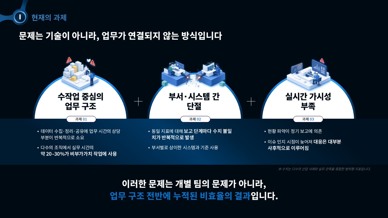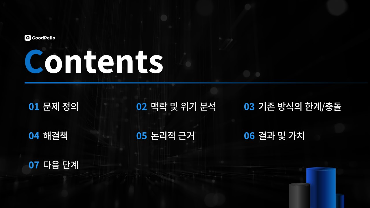 - 고객사와의 프레젠테이션에서 각 슬라이드를 통해 단계적으로 문제를 분석하고, 솔루션의 필요성을 강조하는 방식으로 활용할 수 있습니다. 이를 통해 고객의 이해를 돕고, 설득력을 높이는데 기여합니다.