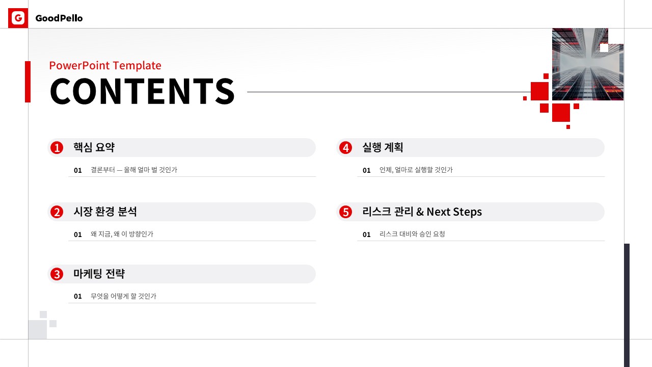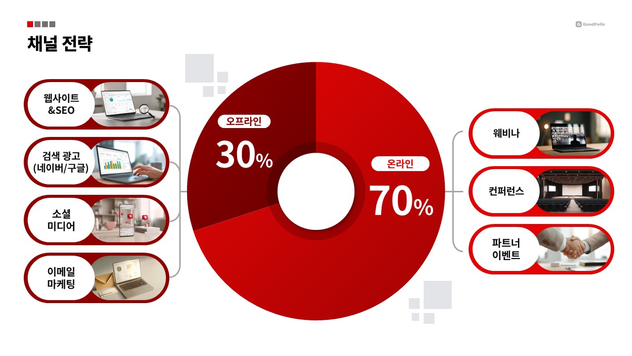슬라이드 배치 구조 설계에 드는 시간을 줄이고, 같은 데이터로도 임원 설득력이 높은 연간 마케팅 전략 보고서를 완성할 수 있습니다. 지금 바로 다운로드하여 실무에 즉시 활용하세요.