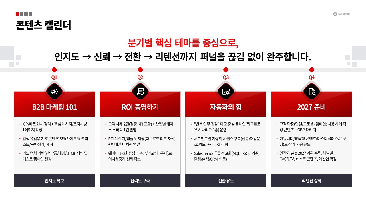 슬라이드 연간 마케팅 전략 보고서 템플릿 | 임원이 끄덕이는 B2B 전략 보고 구성법