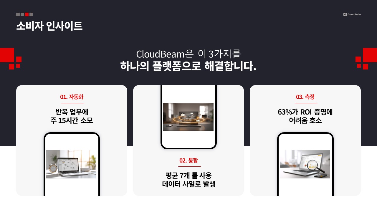 연간 마케팅 전략 보고서 슬라이드 구성 순서가 틀리면 숫자가 아무리 탄탄해도 임원에게 '다시 해와'를 듣습니다. ARR 목표, KPI, 채널 전략, 예산까지 모두 갖췄는데도 승인이 나지 않는 이유는 대부분 슬라이드 배치 순서에 있습니다. 임원은 결론을 먼저 보고 근거를 확인하는 방식으로 보고서를 읽기 때문에, 분석을 앞에 두고 전략을 뒤에 놓는 구조로는 설득이 아니라 단순 보고가 됩니다. 특히 B2B SaaS 마케팅 기획서처럼 예산 배분·방향 정렬·조직 신뢰 세 가지를 한꺼번에 다뤄야 하는 연간 전략 보고서는, 임원이 던지는 질문 순서대로 슬라이드를 배치하지 않으면 구성 설계 자체를 처음부터 다시 해야 하는 상황이 반복됩니다.