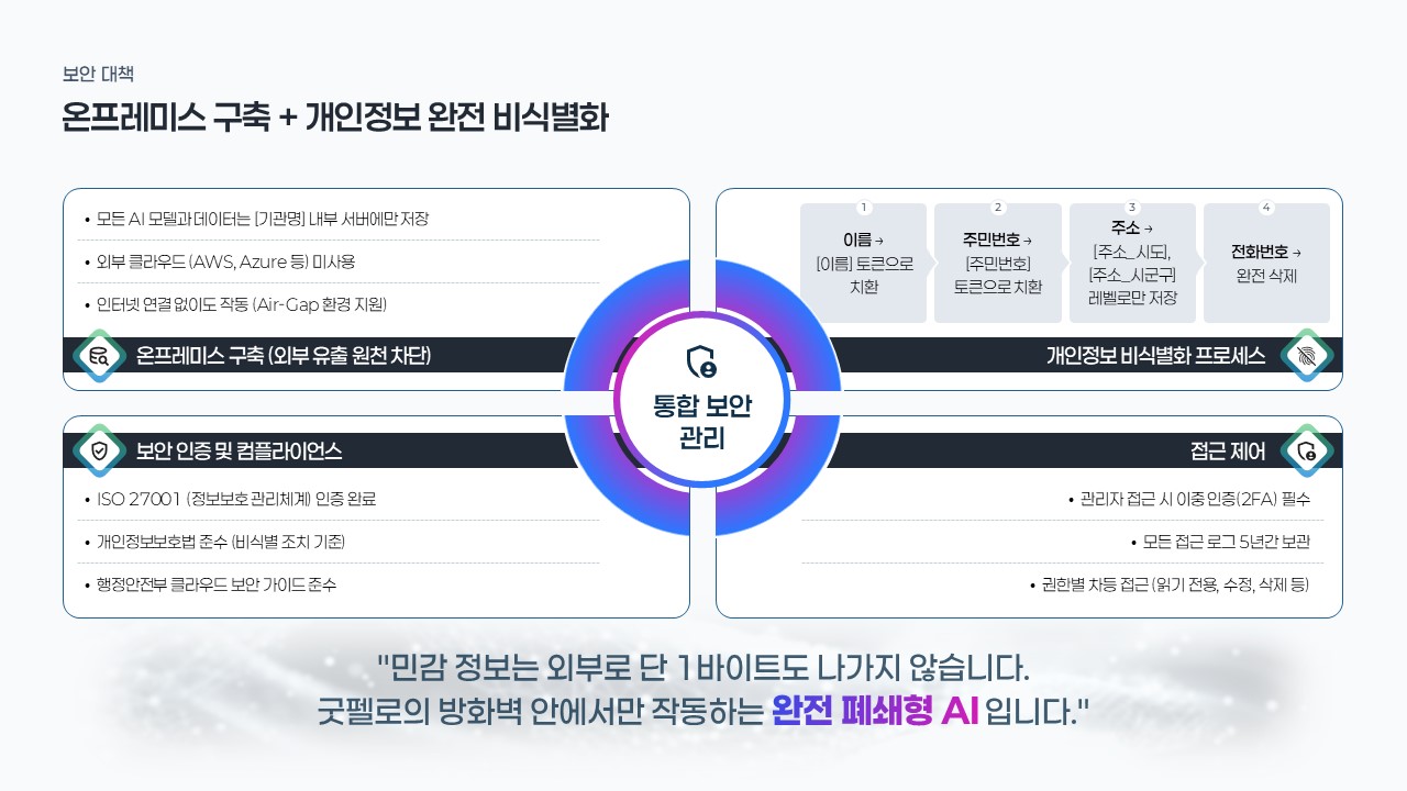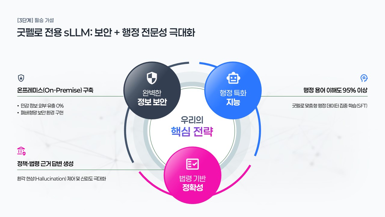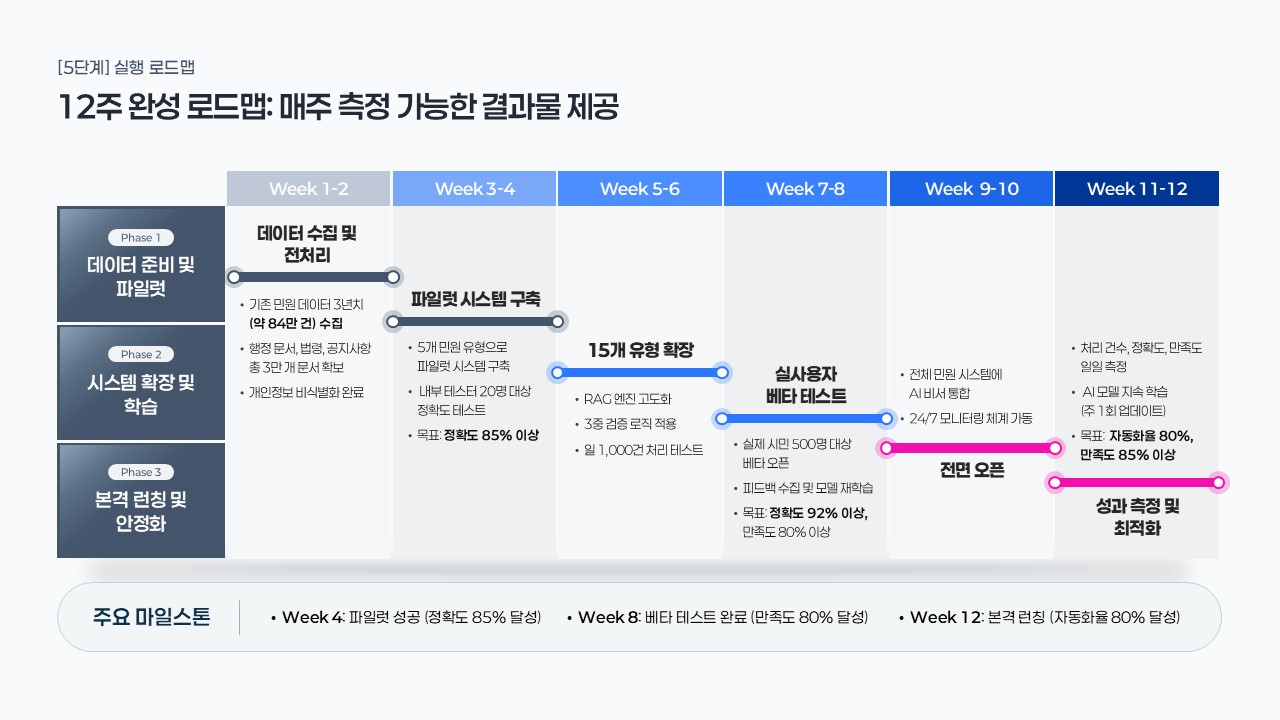 나라장터 공공입찰에서 AI 전환 사업을 수주하려는 솔루션 기업 제안팀이 발주처 RFP 목차에 맞춰 전략적 내용을 채울 때, 공공기관 내부 AI 도입 사업 기획안을 경영진에게 보고하는 담당자가 데이터 기반 ROI 시뮬레이션과 리스크 대응 계획을 시각화할 때, 스타트업이 첫 공공 수주를 목표로 경쟁사 대비 차별화된 온프레미스 sLLM 솔루션 제안서를 제작할 때 즉시 활용할 수 있습니다.