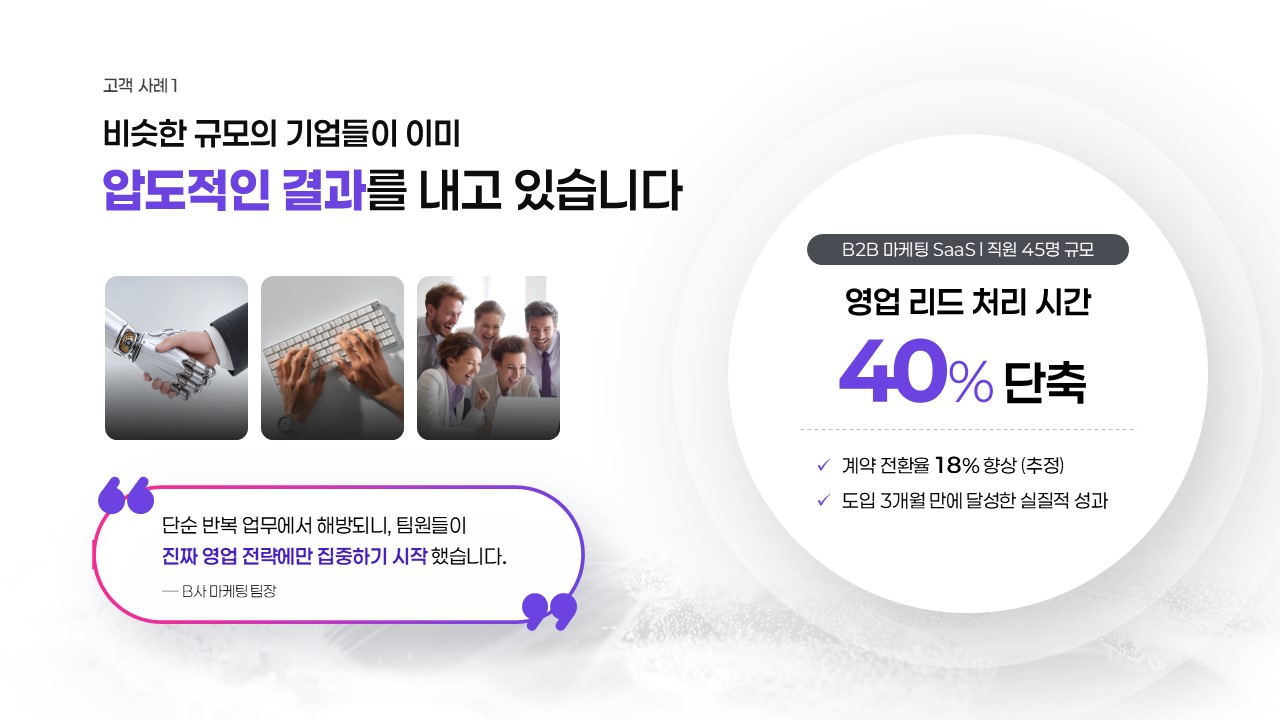 프레젠테이션 SaaS 서비스 소개 템플릿 | B2B 영업 자동화 솔루션 설득 구조 완성본