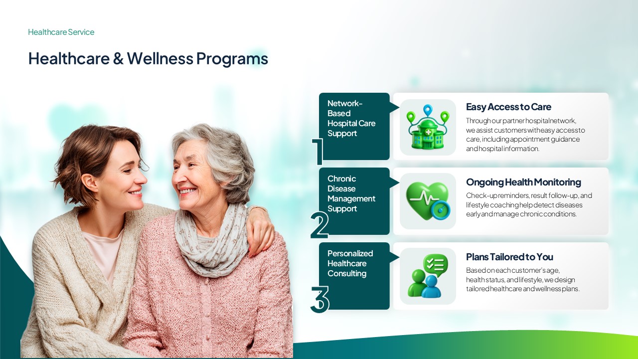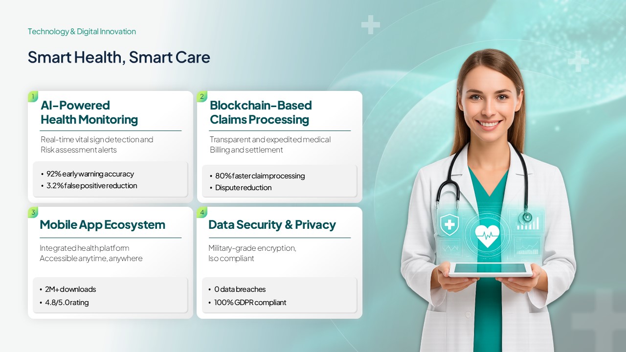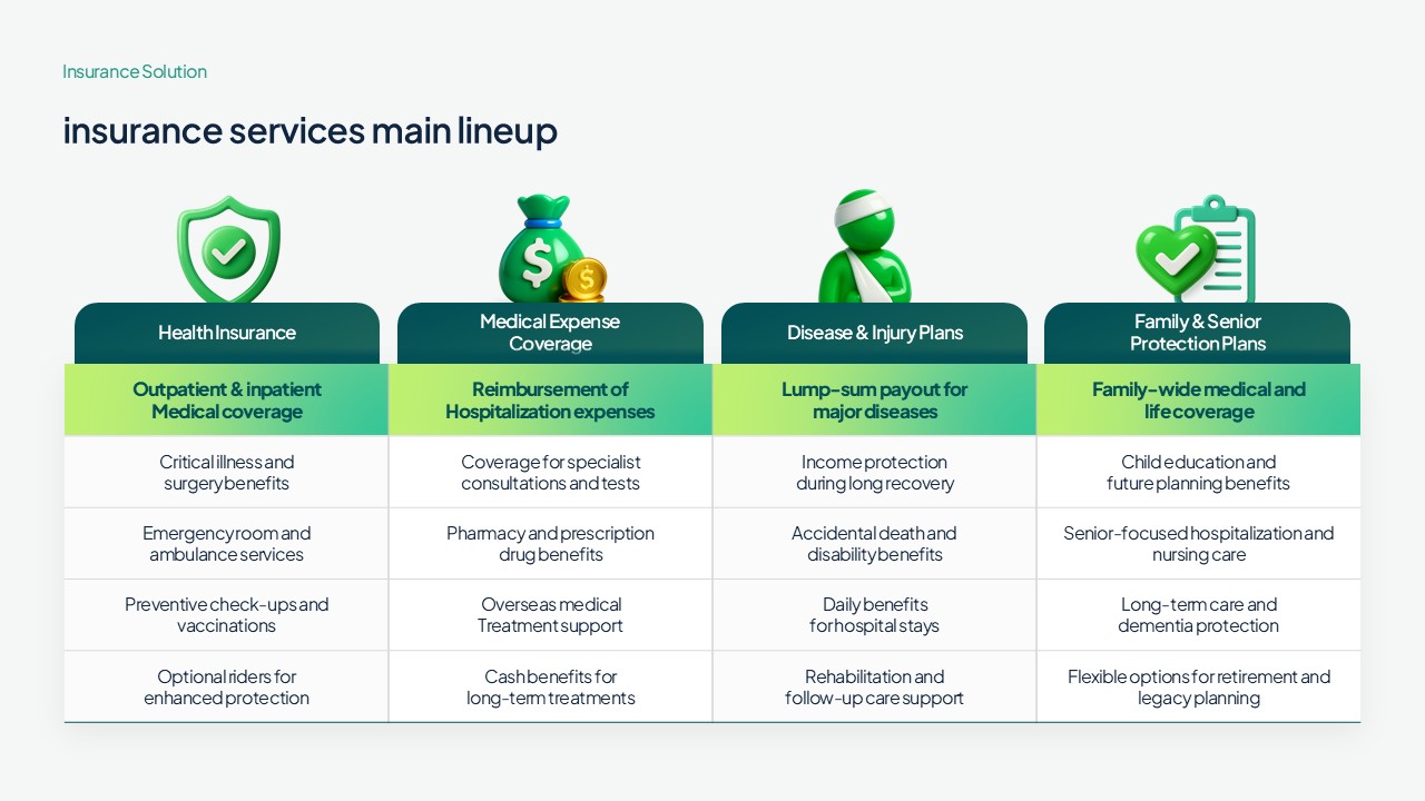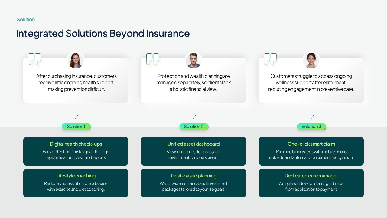 보험·금융·헬스케어 산업에 특화된 전문 파워포인트 발표자료입니다.
