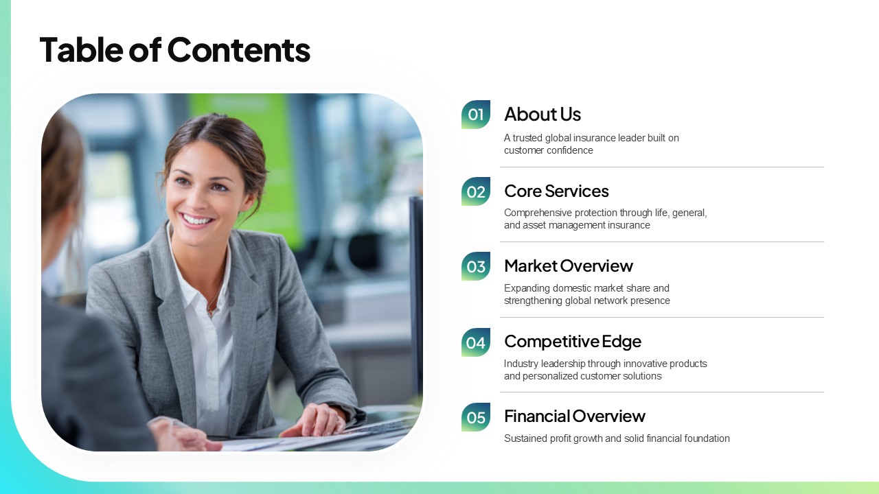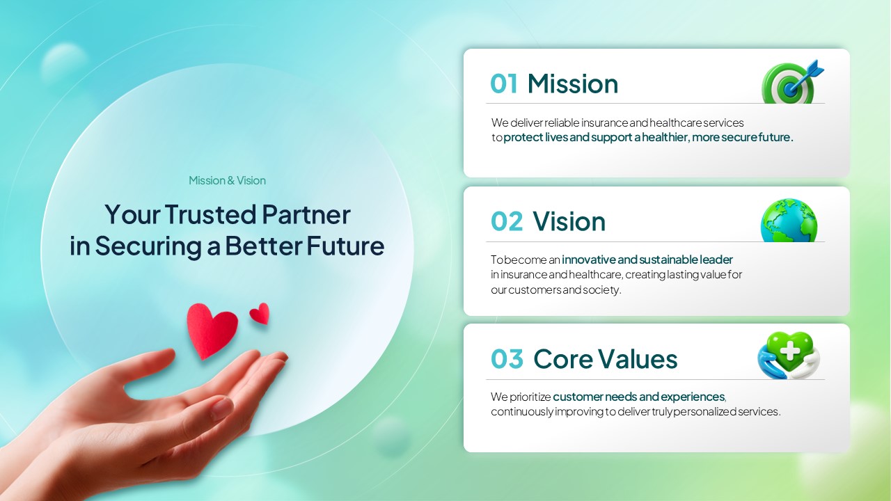 보험·헬스케어·핀테크 기업의 투자자 설명회, 파트너 미팅, 신규 고객 유치 발표에 최적화된 전문 회사소개서 파워포인트입니다. 민트그린 기반의 신뢰감 있는 디자인으로 브랜드 전문성을 효과적으로 전달합니다.