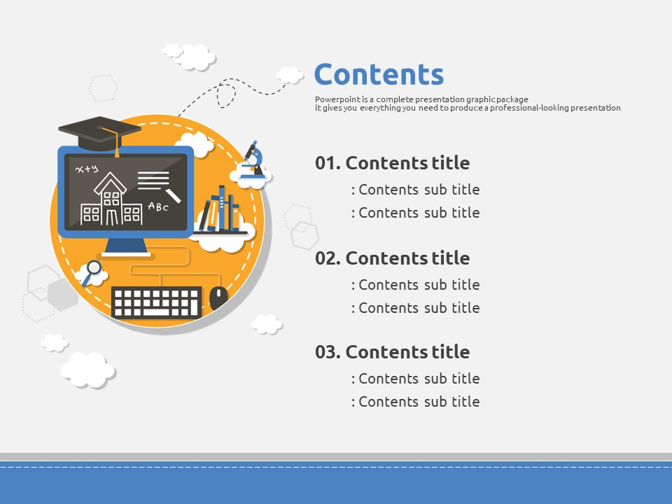 이 교육 아이콘 PPT 템플릿은 화상 교육, 온라인 강의 및 교육 자료 제작에 적합한 디자인으로 구성되어 있습니다. 청량감 넘치는 파란색을 바탕으로 시각적으로 매력적이며, 다양한 교육 내용을 효과적으로 전달하도록 설계되었습니다. 각종 수업, 강의 계획 및 연구 발표에 유용하며, 교육 분야 종사자, 강사 및 온라인 교육 플랫폼 운영자에게 특히 추천드립니다.