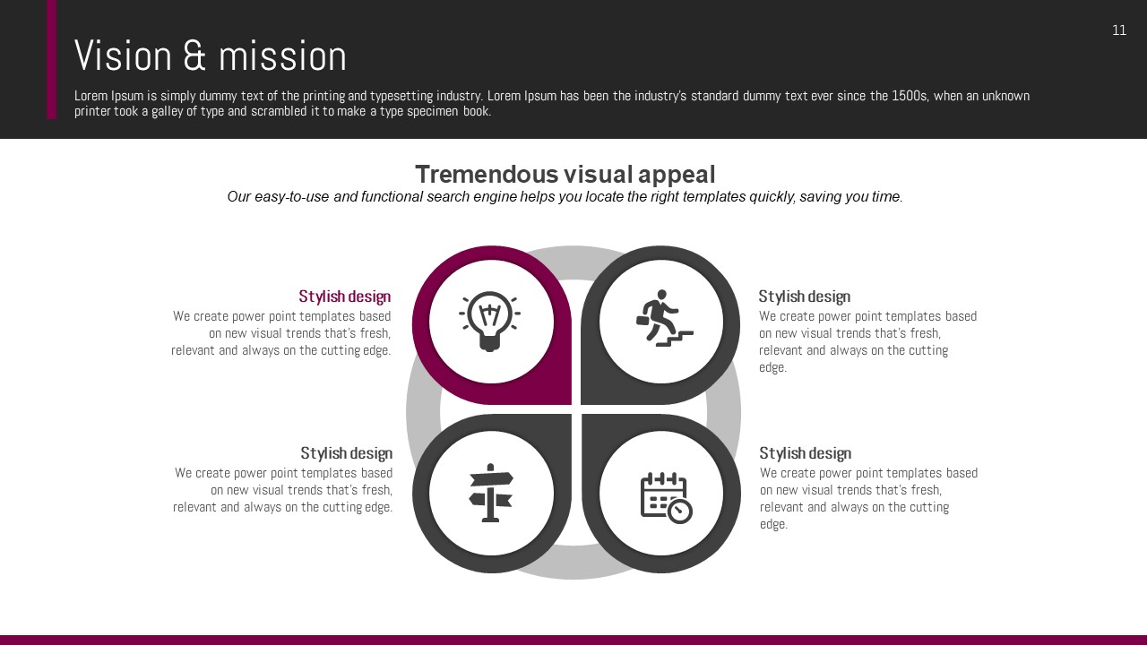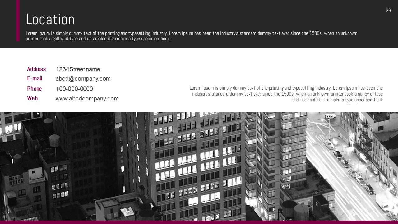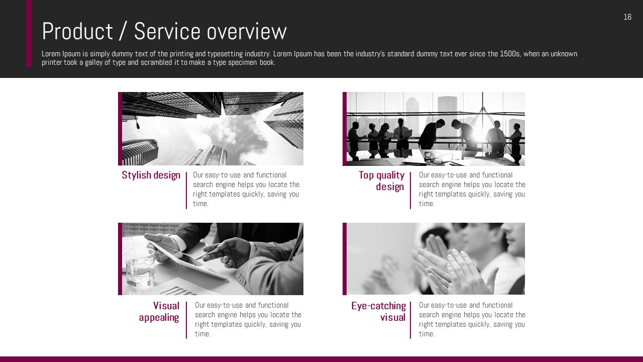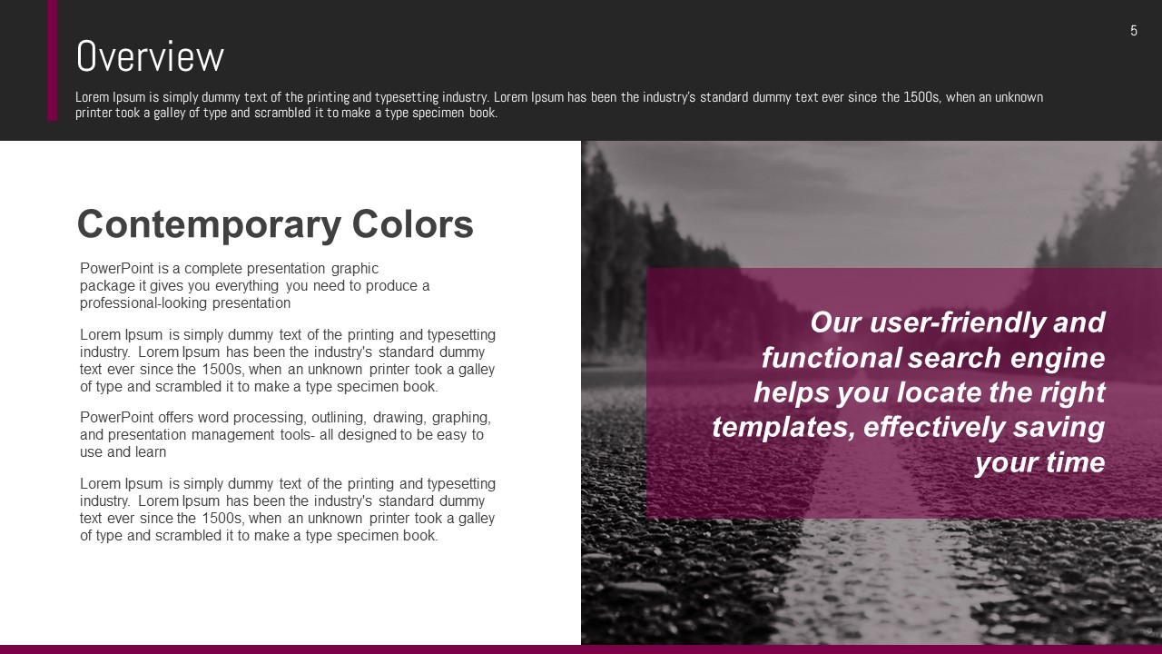이 로드 회사소개서 템플릿은 전문적이고 세련된 디자인으로, 26장의 슬라이드로 구성되어 있습니다. 정보의 흐름은 회사 개요, 비전 및 미션, 글로벌 네트워크, 비즈니스 개요 등으로 이어져 청중에게 효과적으로 정보를 전달합니다. 보라색의 메인 컬러와 심플한 레이아웃은 시각적으로 매력적이며, 귀사의 브랜드 이미지를 잘 반영할 수 있습니다. 기업 실무자와 마케팅 팀에게 추천합니다.
