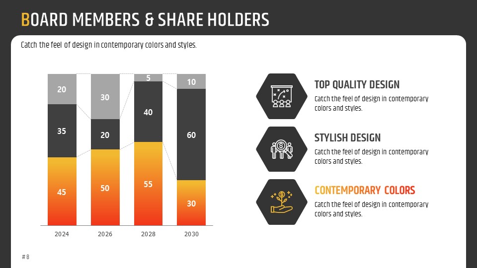 육각형 회사소개서 템플릿은 현대적이고 세련된 레이아웃으로, 26장의 슬라이드로 기업의 비전과 전략을 효과적으로 전달할 수 있도록 설계되었습니다. 주황과 파랑의 조화로운 색상 조합은 발표에 에너지를 불어넣으며, 디지털 환경에 적합한 시각적 요소로 구성되어 있어 팀원과 클라이언트에게 강력한 인상을 남길 수 있습니다. 실무 기획자, 마케팅 전문가는 물론 창업자와 스타트업 팀에게 최적화된 이 템플릿은 투자 제안서, 사업 계획서 등 다양한 발표 목적으로 활용 가능합니다.
