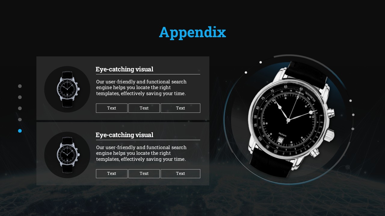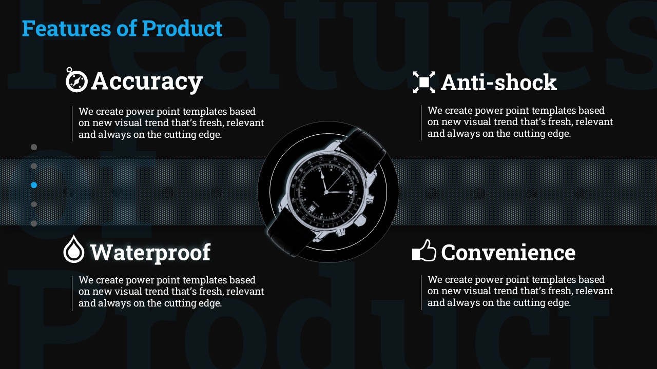 이 템플릿은 시계 제품을 효과적으로 소개하기 위해 특별히 설계되었습니다. 25장의 구성으로 제품의 특징, 기능, 경쟁 우위, 사용 사례 등을 체계적으로 제시하며, 세련된 디자인을 통해 전문성과 신뢰성을 강조합니다. 제품 관리자, 마케팅 팀, 영업 담당자 등 다양한 사용자에게 적합하며, 효율적인 정보 전달이 가능합니다. 시계 회사의 브랜드 이미지와 연결하여 고객에게 매력적으로 다가갈 수 있습니다.