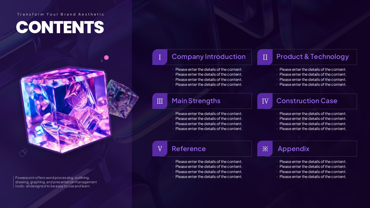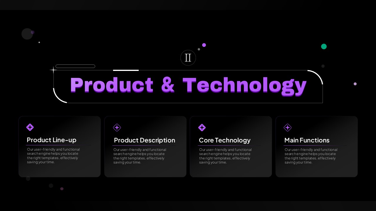 이 템플릿은 세련된 스퀘어 그래픽 디자인으로 구성되어 있어 제품 소개서 작성에 최적화되어 있습니다. 25장의 슬라이드로 이루어져 있으며, 각 슬라이드는 제품 특징, 기술력, 제품의 강점, 주요 기능 등을 논리적이고 효과적으로 전달할 수 있도록 구성되어 있습니다. 보라색의 세련된 색조와 현대적인 디자인이 조화를 이루어 투자자나 고객에게 신뢰감을 줄 수 있습니다. 기업 실무자 및 마케팅 전문가, 스타트업 팀에서 효과적으로 활용할 수 있는 자료입니다.