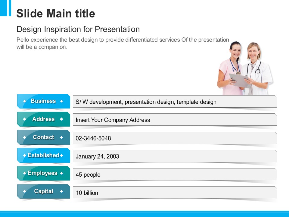 이 템플릿은 병원 소개, 의료 서비스 설명, 의료 사업 전략 발표 등에 적합한 슬리드 구성으로 되어 있습니다. 심플하고 현대적인 디자인은 복잡한 의료 정보를 쉽게 전달할 수 있도록 도와줍니다. 병원 기획팀, 의료 서비스 제공자, 기업 관계자들에게 추천합니다.