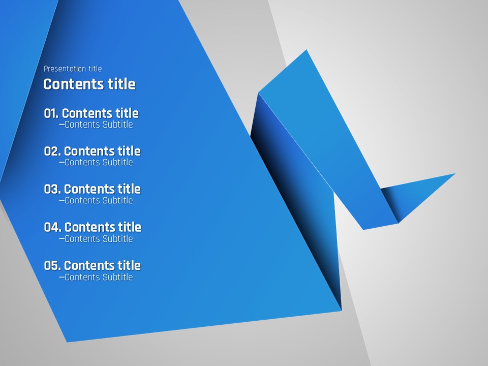 이 템플릿은 종이접기 모티브의 애니메이션 효과를 사용하여 동적이고 시각적으로 매력적인 발표 경험을 제공합니다. 세련된 블루 색상을 통해 현대적이고 전문적인 디자인을 구현하였으며, 각 슬라이드에 이는 메시지 전달력을 극대화합니다. 비즈니스 제안서, 교육 프레젠테이션 또는 크리에이티브 프로젝트 소개에 적합하며, 시청자의 관심을 끌기에 충분한 구성으로 설계되었습니다.
