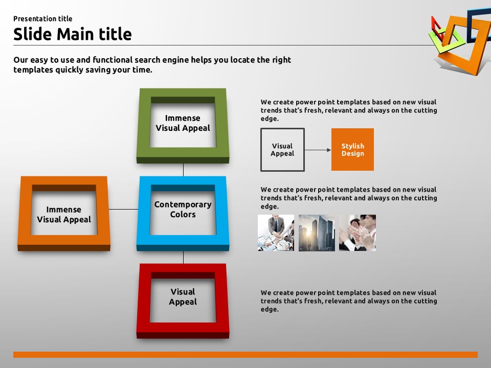 이 네모 레이아웃 애니메이션 PPT 템플릿은 직관적인 사각형 디자인을 통해 정보를 명확하게 전달합니다. 동적인 슬라이드 전환 효과가 특징으로, 청중의 시선을 끌고 몰입도를 높입니다. 이 템플릿은 기업 프레젠테이션, 마케팅 자료, 교육 콘텐츠 등 다양한 상황에서 활용할 수 있습니다.