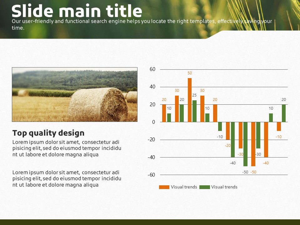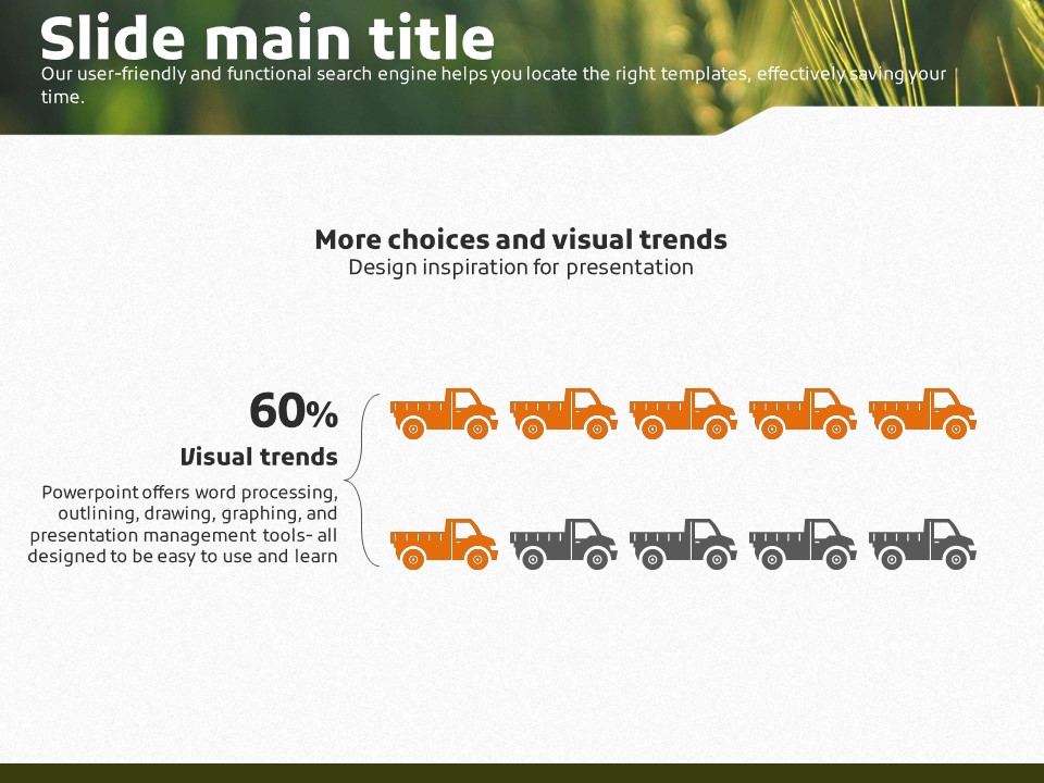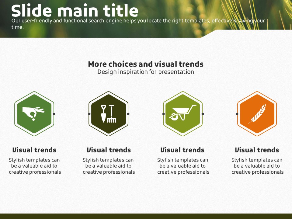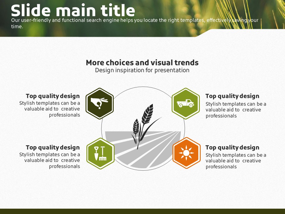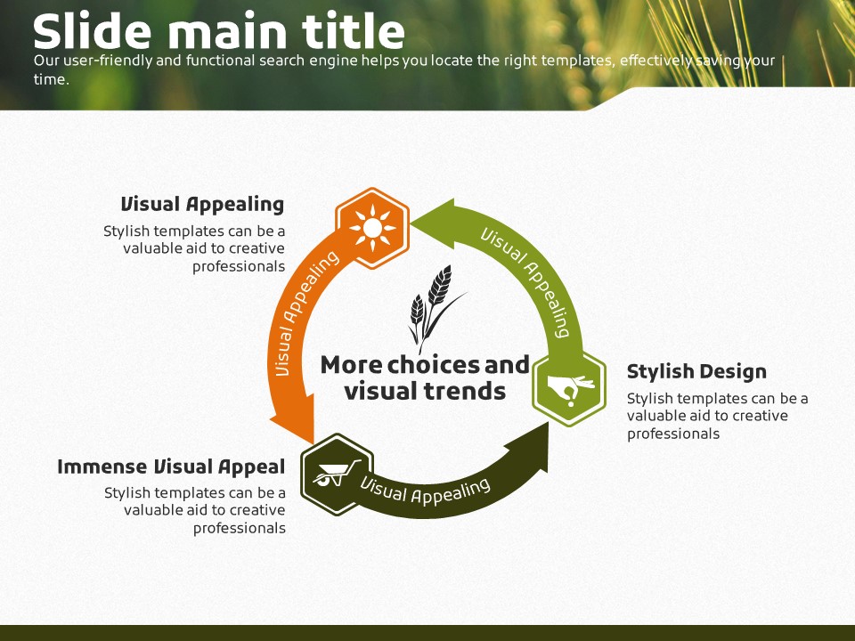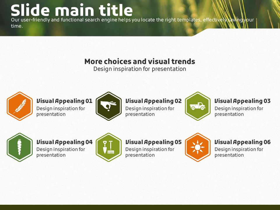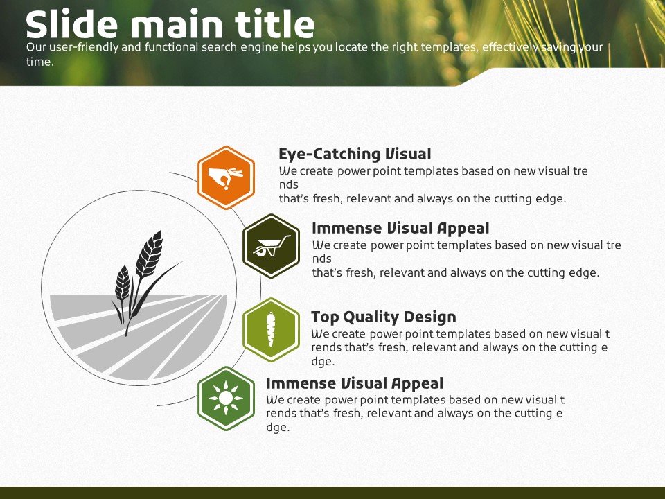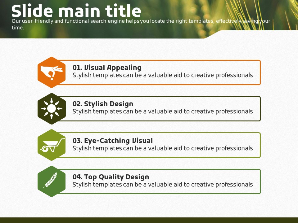 이 애니메이션 프레젠테이션 템플릿은 자연의 아름다움을 생동감 있게 표현하여 강력한 시각적 효과를 제공합니다. 보리 수확을 주제로 한 이 템플릿은 정보 전달을 효과적으로 지원하며, 발달하는 농업과 자연 환경에 대한 깊은 메시지를 전달합니다. 강의, 세미나, 기억에 남는 마케팅 발표 등에서 활용 가능하며, 흥미로운 디자인과 애니메이션이 결합되어 청중의 이목을 끌어냅니다.