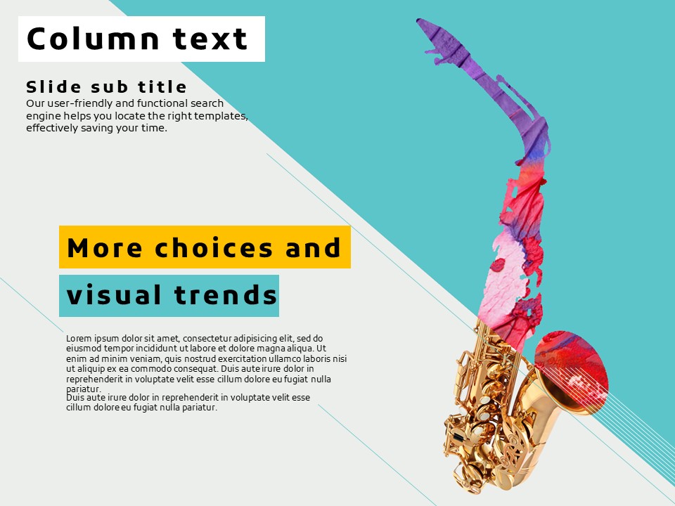 이 템플릿은 음악을 주제로 한 애니메이션 효과가 돋보이는 프레젠테이션을 위해 설계되었습니다. 화려한 색상과 다채로운 그래픽이 조화를 이루며 슬라이드를 매력적으로 표현합니다. 발표자가 감정을 실질적으로 전달하고 메시지를 강렬하게 인상 지을 수 있도록 도와줍니다. 이 템플릿은 교육, 음악 관련 비즈니스, 공연 기획 등 다양한 상황에 적합하게 활용할 수 있는 디자인 구조를 제공합니다.