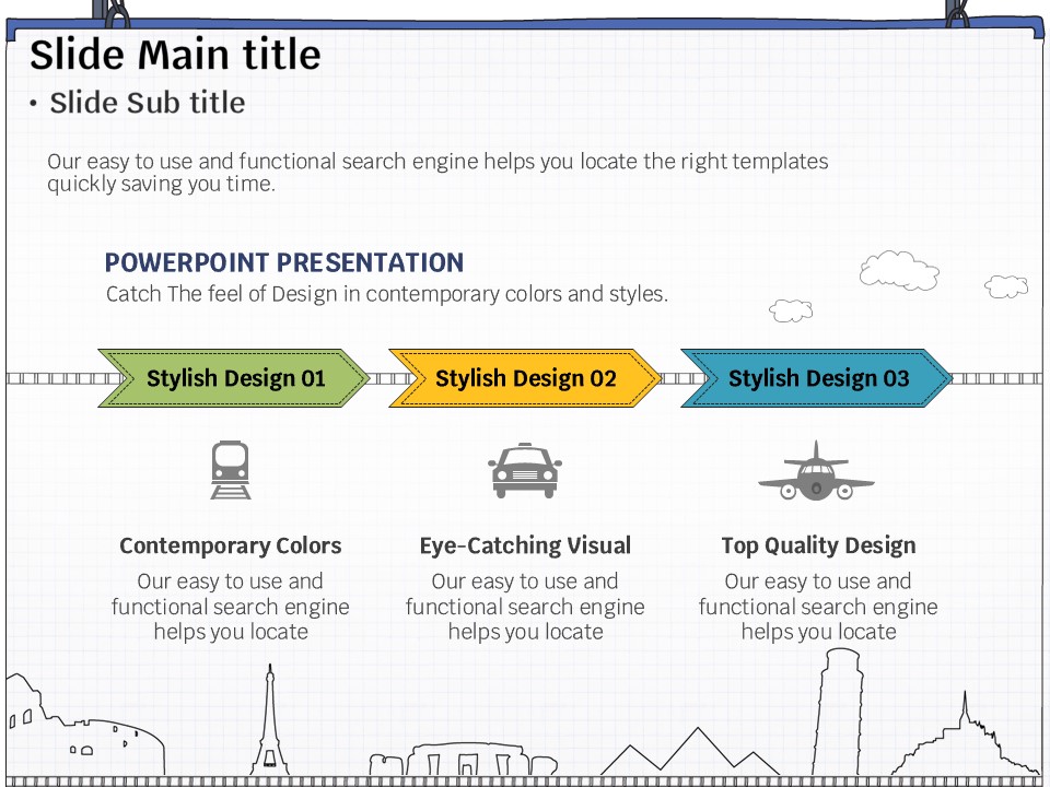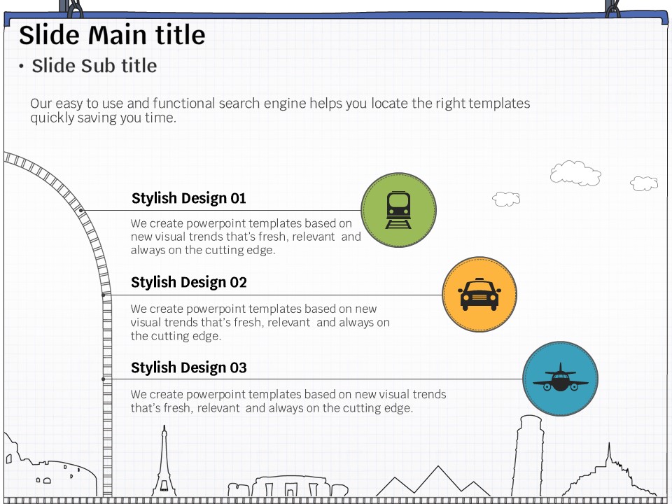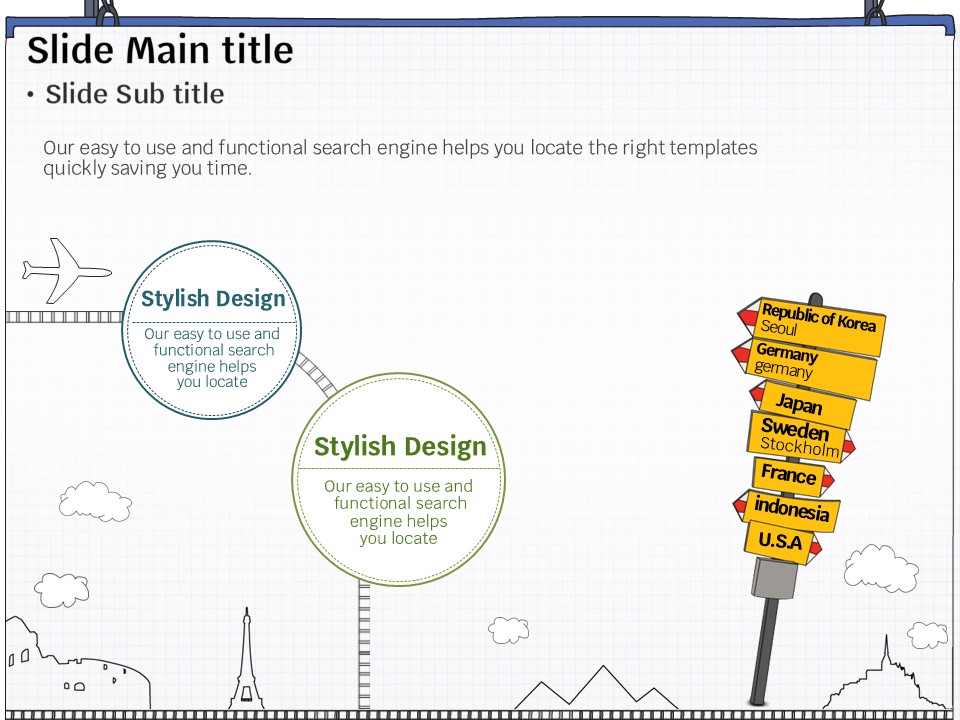이 템플릿은 여행 관련 프로젝트, 관광 안내서, 관광 마케팅 발표 등에서 활용하기 적합한 세트형 구성입니다. 초록, 파랑, 노랑의 화사한 색상과 여행 지도를 중심으로 한 디자인은 청중의 관심을 끌고, 대화형 스타일로 정보를 효과적으로 전달할 수 있도록 돕습니다. 여행 에이전트, 관광업 종사자 및 이벤트 기획자에게 특히 추천드립니다.