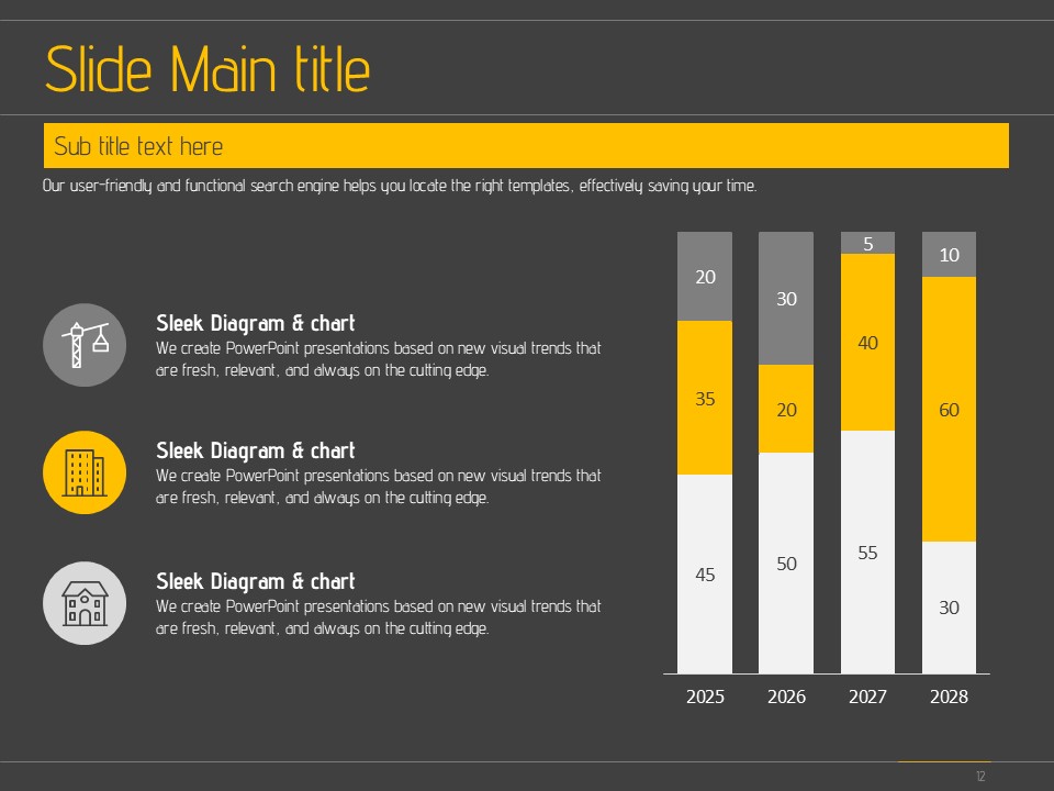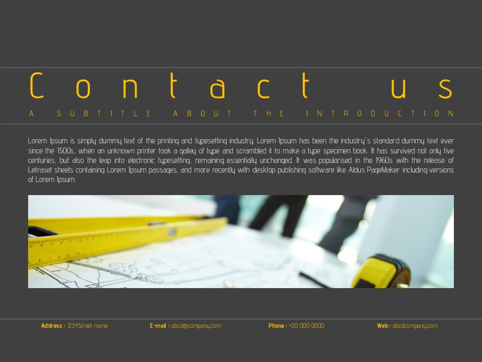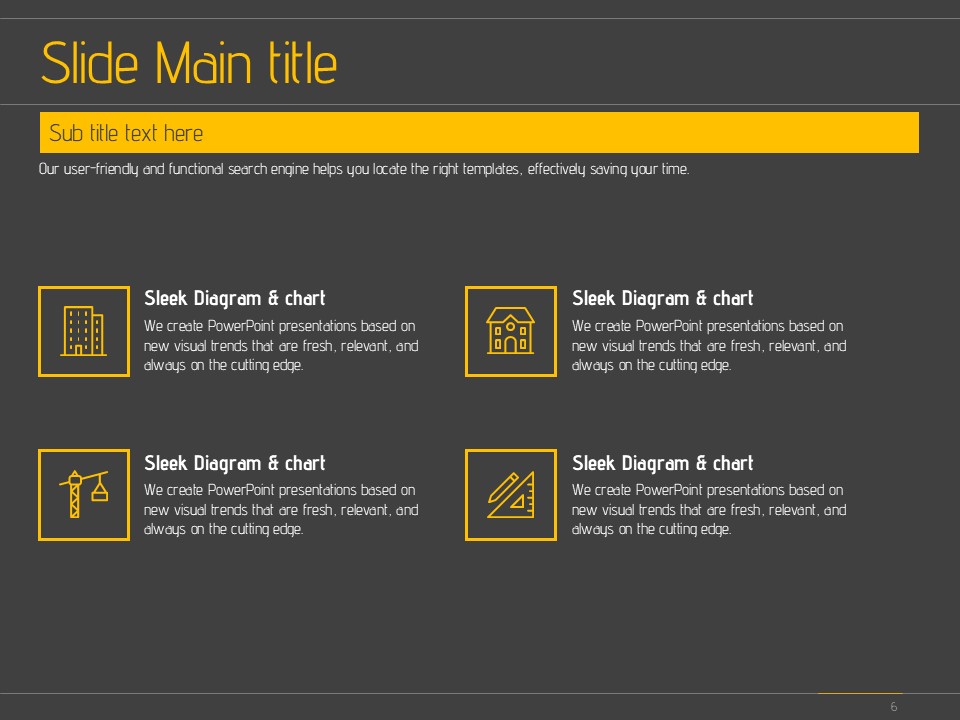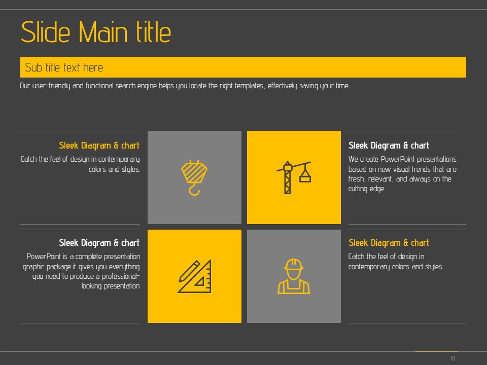 이 애니메이션 템플릿은 현대적인 건축 디자인을 담아낸 강렬한 시각적 요소로, 건설 회사 소개에 최적화된 구성입니다. 각 슬라이드에는 부드러운 애니메이션 효과가 적용되어 발표의 몰입감을 더하며, 데이터 시각화, 프로젝트 개요 및 기업 비전을 효과적으로 전달할 수 있습니다. 진취적이고 혁신적인 디자인을 통해 건설업계의 전문성을 강조하고, 파트너 및 고객에게 강한 인상으로 다가갈 수 있는 기회를 제공합니다.
