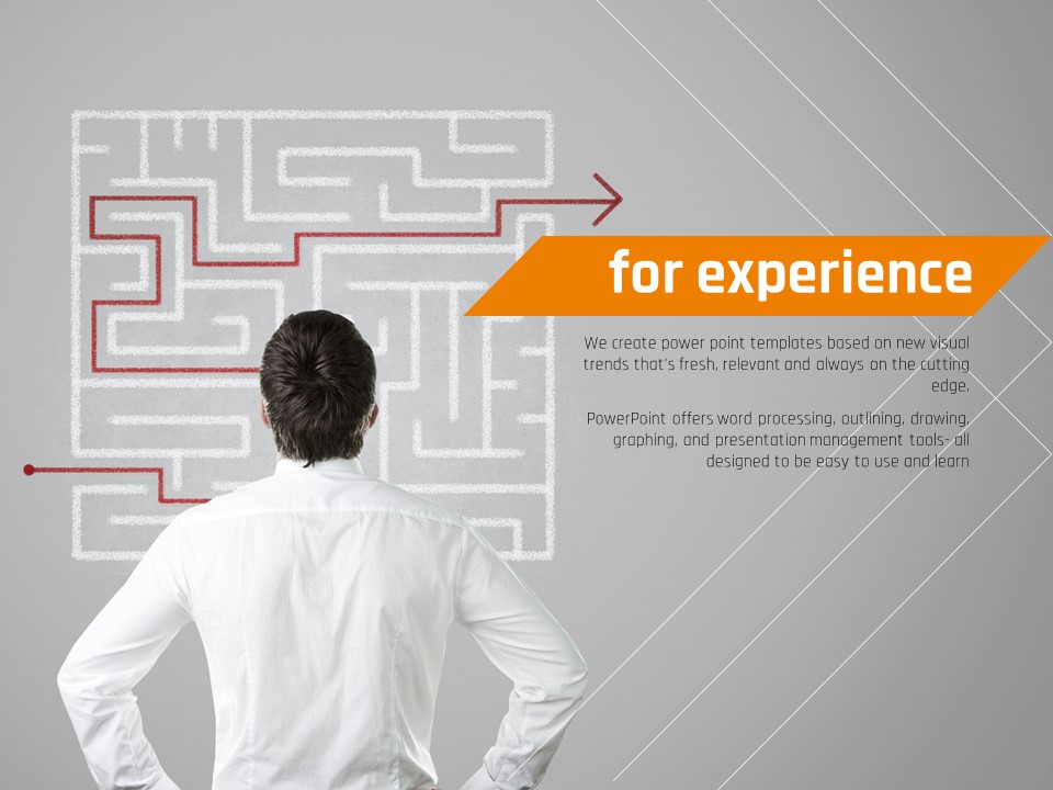 이 템플릿은 경험을 중심으로 한 메시지를 강화하는 ZEN 스타일의 프레젠테이션 템플릿입니다. 주황색 포인트가 강렬한 이미지를 더하며, 슬라이드의 중심에 위치한 'for experience'라는 문구는 청중에게 강력한 인상을 남깁니다. 이 템플릿은 교육적 목적, 워크샵, 세미나 등 다양한 발표 상황에서 활용 가능하며, 발표자가 경험을 기반으로 감정적으로 소통할 수 있도록 돕습니다.