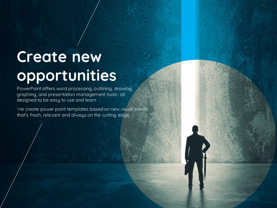 이 ZEN형 템플릿은 '기회'라는 메시지를 중심으로 강력한 시각적 표현을 통해 감정적 소통을 극대화합니다. 세련된 파란색 계열의 디자인은 발표 내용을 돋보이게 하며, 기업 발표, 여기서 강조하는 비즈니스 기회 제안 및 브랜드 가치 통찰에 최적화되어 있습니다. 메시지의 전달력을 높이며, 청중의 감정에 호소합니다.