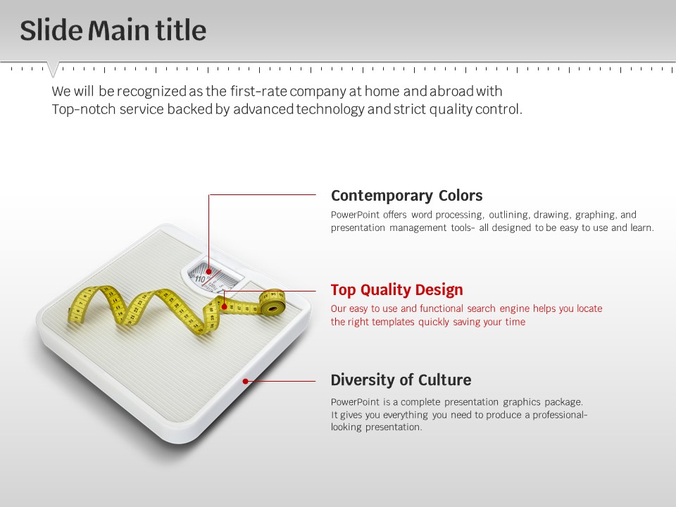 이 템플릿은 다이어트와 건강을 주제로 하는 다양한 프레젠테이션에 적합한 구성입니다. 세련되고 감각적인 디자인으로 체중 관리, 운동 및 건강한 식단을 효과적으로 전달할 수 있도록 도와줍니다. 다이어트 전문가, 피트니스 코치, 영양사에게 특히 추천합니다.