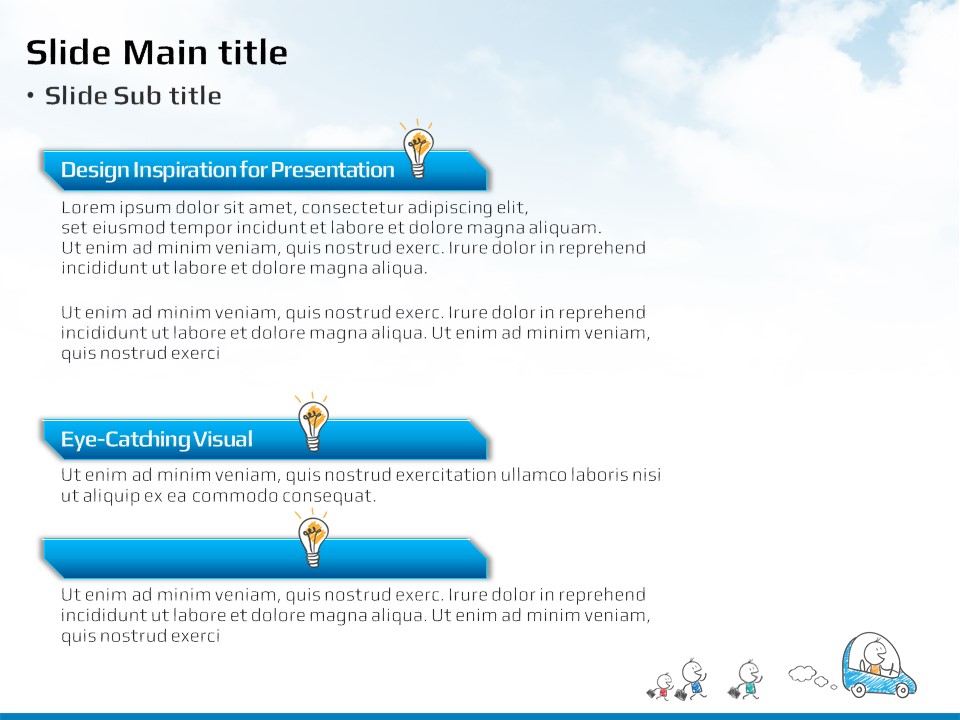 이 템플릿은 아이디어 발표와 창의적인 기획을 위한 매력적인 디자인으로 구성되어 있습니다. 다양한 색상을 활용하여 시각적으로 돋보이며, 포켓 사이즈의 캐릭터 일러스트와 상징적인 전구 이미지를 통해 아이디어의 유연함과 창의성을 표현합니다. 보고서, 제안서, 기획서 작성 시 활용이 가능하며, 교육자 및 창의 산업 종사자들에게 특히 적합합니다.