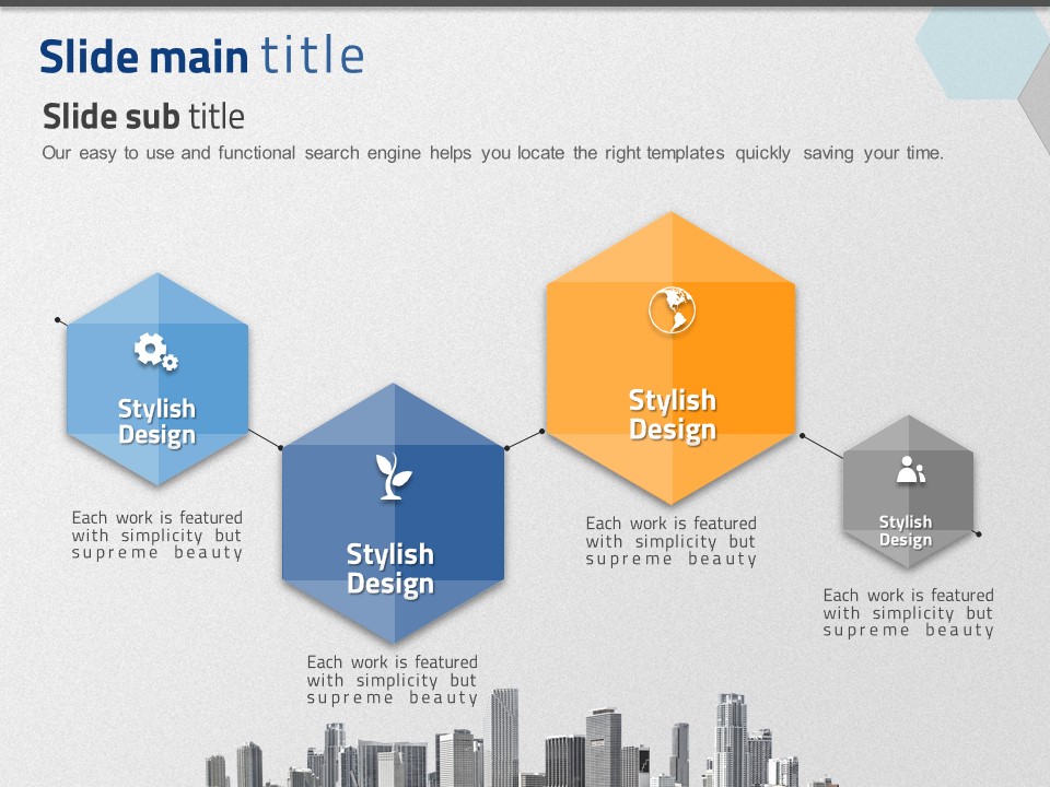 이 템플릿은 현대적이고 세련된 육각형 패턴을 활용하여 비즈니스 프레젠테이션을 더욱 돋보이게 합니다. 깔끔하고 심플한 디자인의 레이아웃은 기획서, 제안서, 보고서 등 다양한 문서 유형에 적용이 가능하여 높은 활용성을 자랑합니다. 기업 실무자와 창업가들이 특히 선호하며, 화려한 색상 조화로 시각적인 매력을 더하고 있습니다.