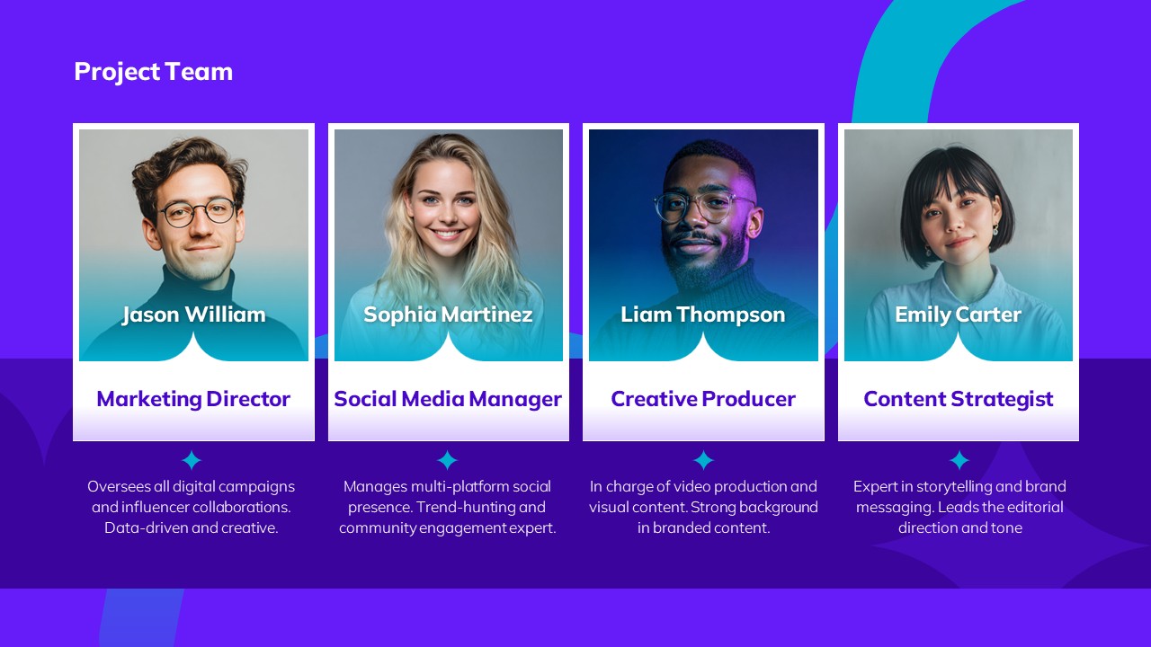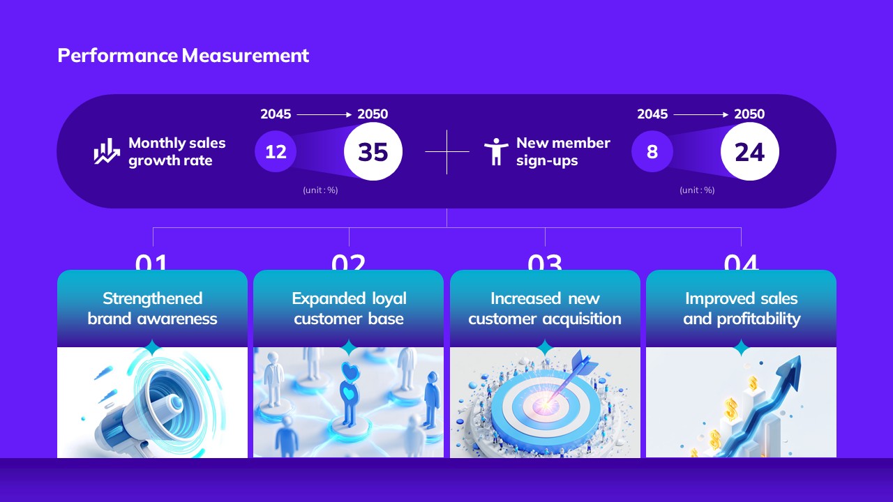 다양한 인물 이미지와 아이콘 그래픽을 활용해 프레젠테이션에 생동감을 더하며, 트렌디한 브랜드 제안서·캠페인 기획서·SNS 마케팅 보고서 등에 적합합니다. 팀 구성, 목표, 성과 측정까지 체계적으로 표현되어 실제 제안 현장에서 설득력 높은 결과물을 만들 수 있습니다.