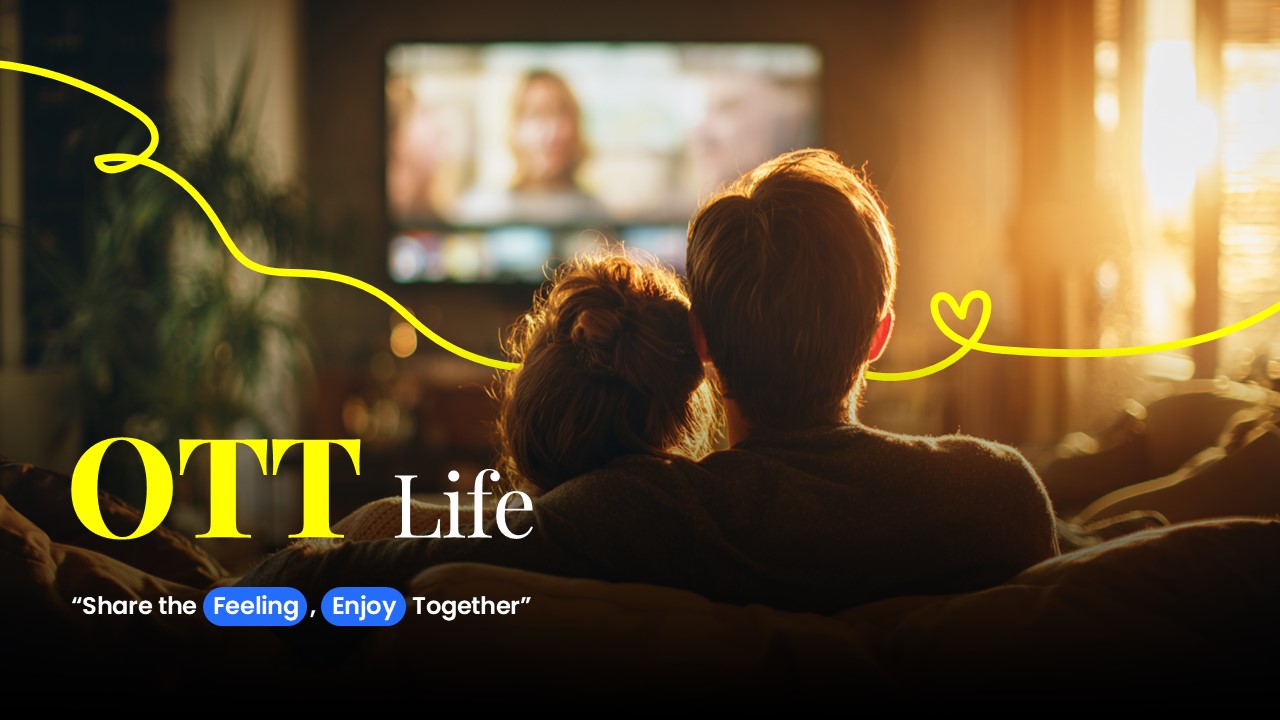 함께 느끼고 즐기는 OTT 라이프를 표현한 슬라이드입니다. TV 앞에서 소중한 순간을 공유하며, 다양한 OTT 플랫폼에서 최신 영화·드라마를 마음껏 즐길 수 있는 라이프스타일을 제시합니다. 스트리밍, 영화추천, OTT서비스 활용 홍보자료에 효과적입니다.