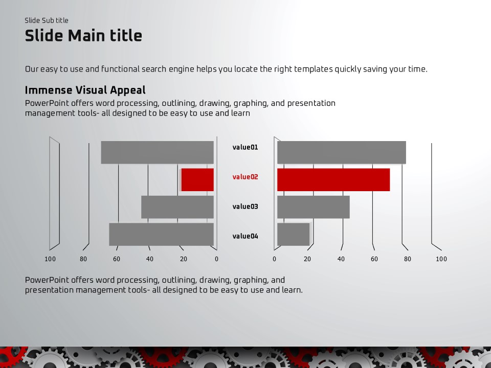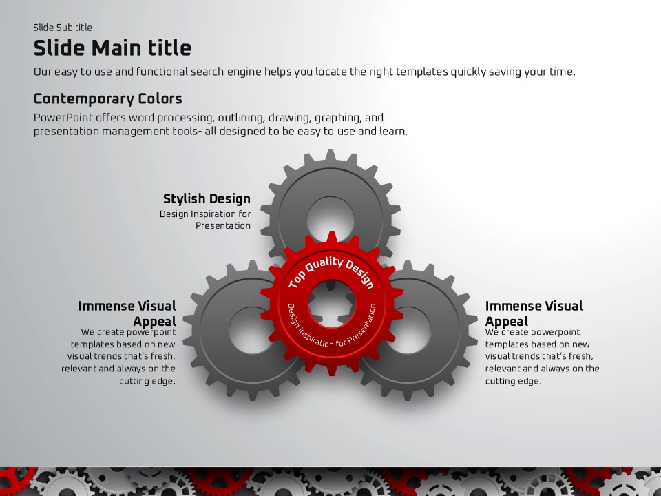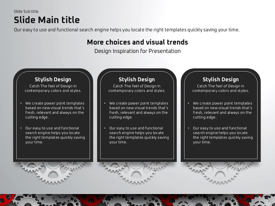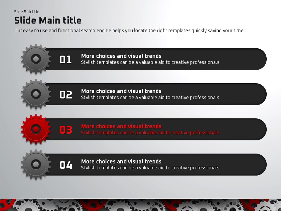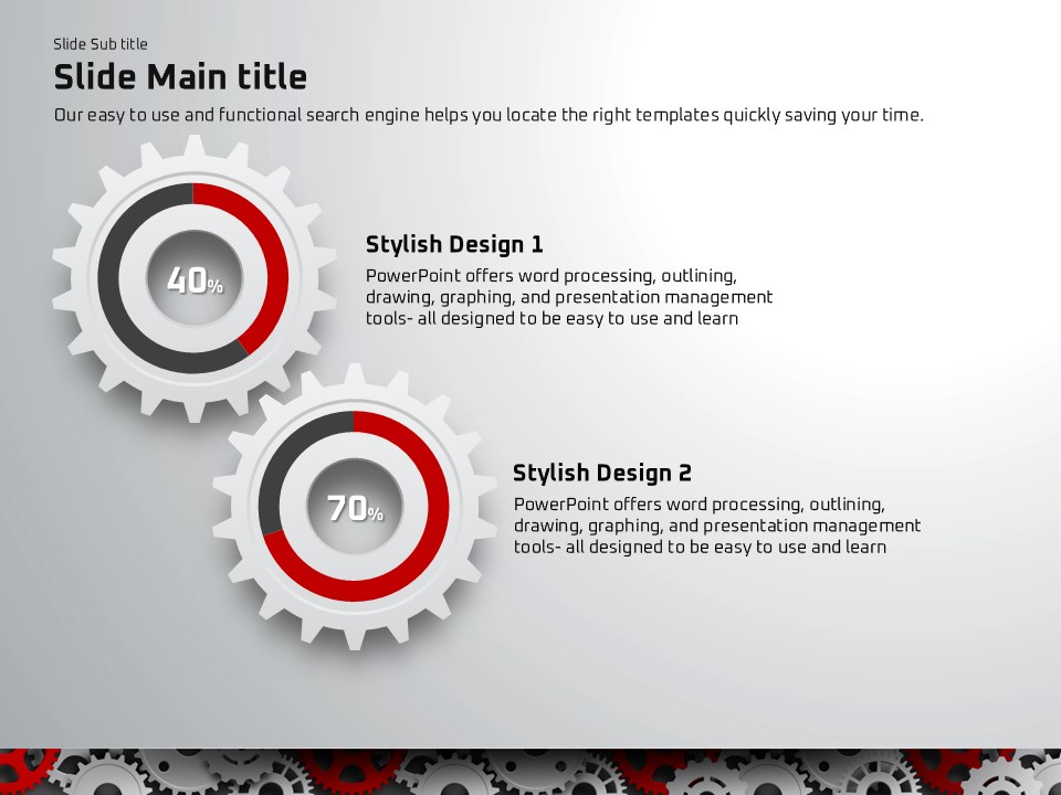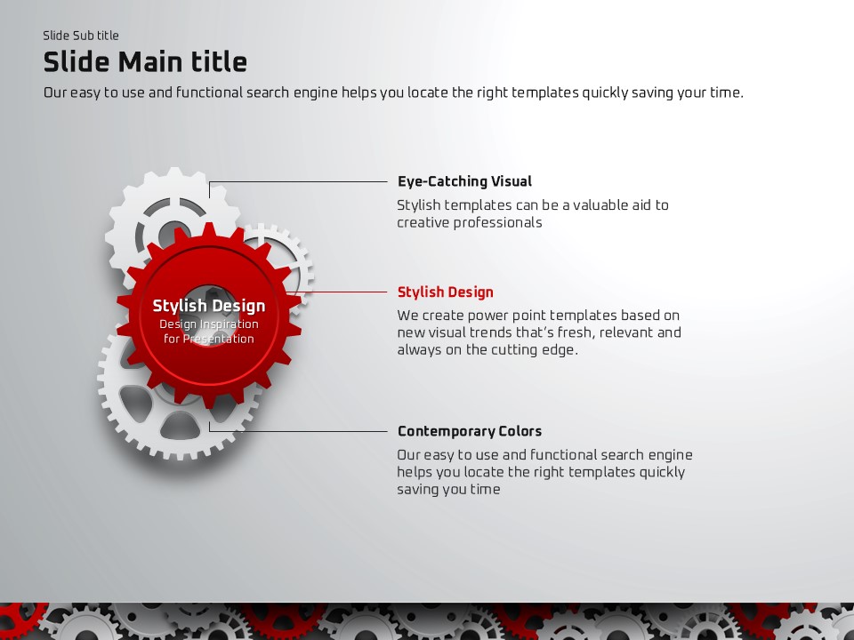 이 템플릿은 톱니바퀴 디자인을 통해 역동적이고 전문성이 강조된 프리젠테이션을 제공합니다. 강렬한 빨간색과 세련된 회색 계열을 사용하여 시각적인 임팩트를 주며, 기업의 기획서, 보고서 또는 크리에이티브 작업에 적합합니다. 다양한 사용 시나리오에 유연하게 활용할 수 있어 스타트업, 기업 실무자, 교육 및 연구 분야 종사자에게 추천합니다.