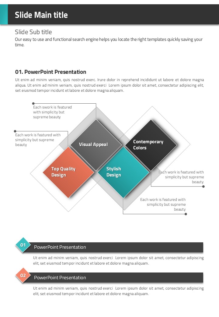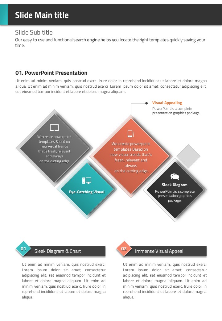 이 마름모 패턴 세로형 PPT 템플릿은 독창적이고 현대적인 디자인으로 구성되어, 다양한 비즈니스 상황에서 효과적으로 활용할 수 있습니다. 정보 전달을 최적화한 구조와 뚜렷한 색상 대비가 특징이며, 제안서, 보고서, 콘텐츠 소개와 같은 다양한 문서 유형에 적합합니다. 특히 기업 실무자, 창업가, 교육 분야 종사자에게 효과적인 프레젠테이션 자료로 추천드립니다.