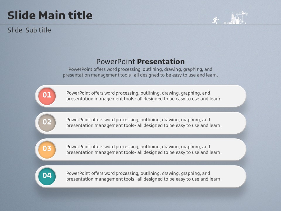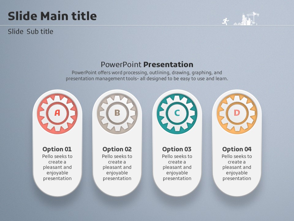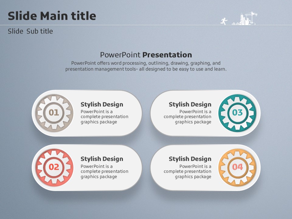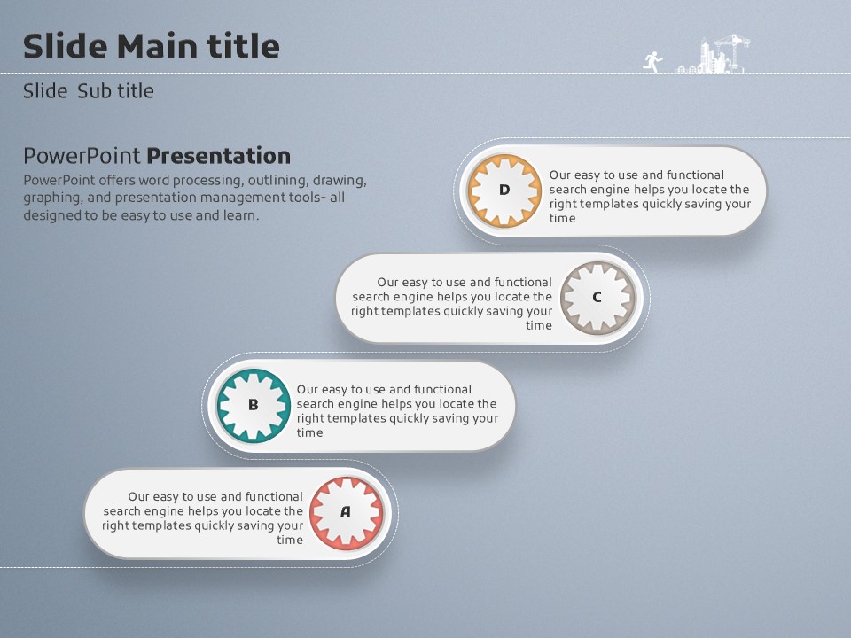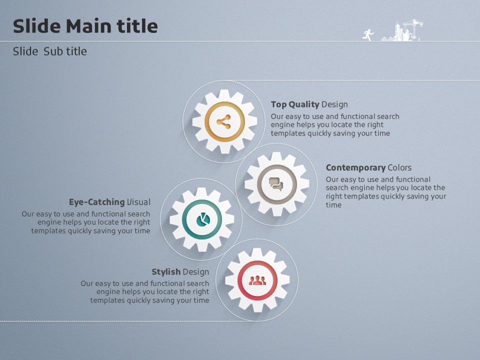 이 템플릿은 톱니바퀴 일러스트로 구성되어 있으며, 건설 및 부동산 관련 발표에 적합한 창의적이고 실용적인 디자인을 제공합니다. 프레젠테이션의 각 슬라이드는 기업의 리더십, 정보 전달, 데이터 시각화 등을 효과적으로 지원하기 위한 다양한 형식을 갖추고 있습니다. 기업 실무자와 창업가들에게 특히 추천합니다.