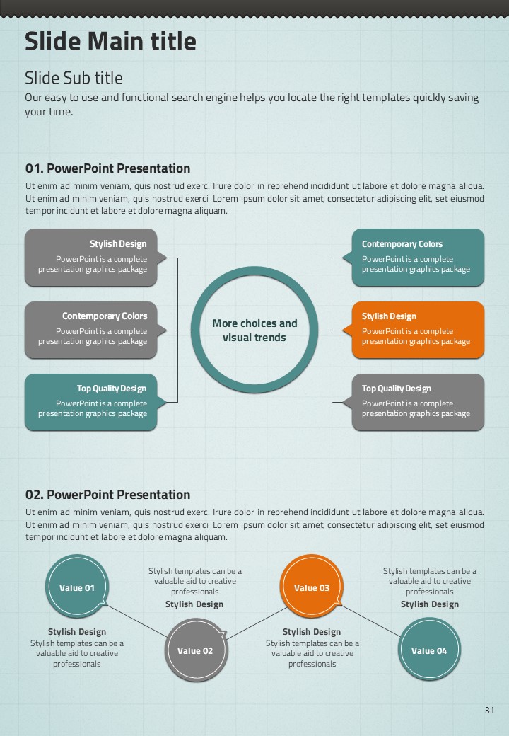 디자인 프레젠테이션 템플릿 – 현대적이고 세련된 슬라이드 구성