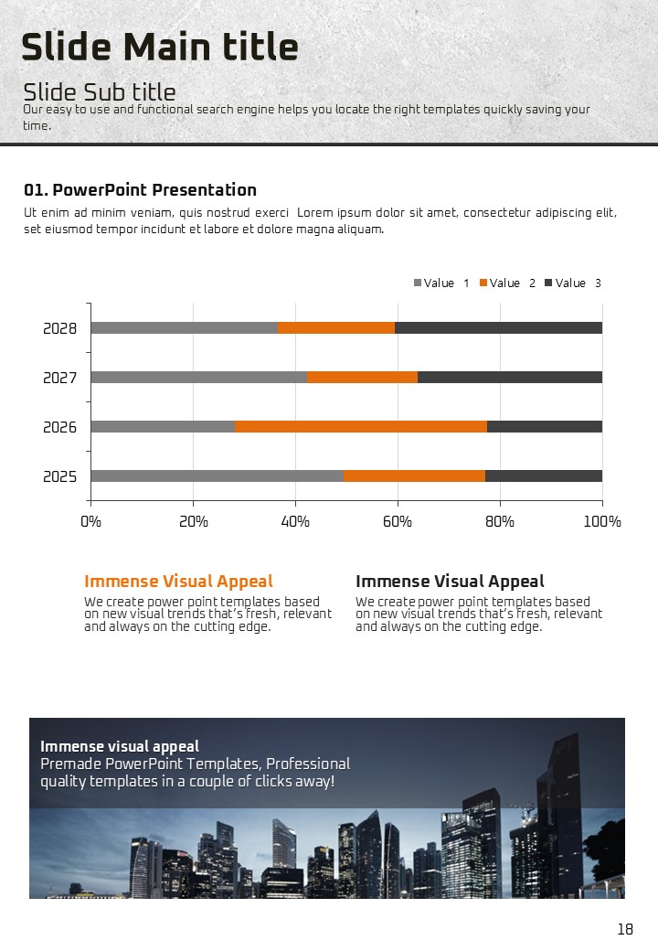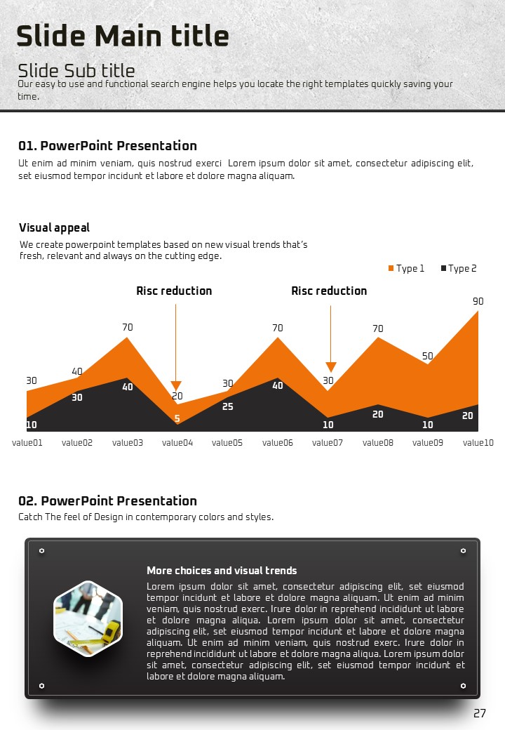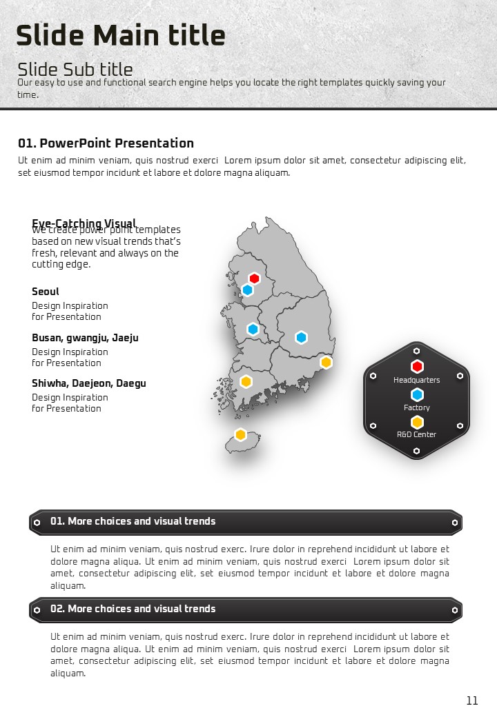 이 템플릿은 콘크리트 배경을 활용한 세로형 디자인으로, 모던하고 강렬한 인상을 전달합니다. 복잡한 데이터를 효과적으로 시각화하고, 비즈니스 기획서, 보고서, 제안서 등 다양한 용도로 활용할 수 있습니다. 기업 실무자 및 스타트업 팀에 특히 적합합니다.
