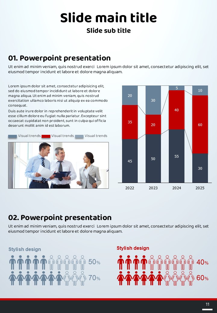 이 원패턴 세로형 템플릿은 차별화된 디자인의 요소들을 통해 프레젠테이션의 프로페셔널함을 극대화합니다. 명확하고 심플한 레이아웃으로 기획서, 제안서, 교육자료 등 다양한 문서 유형에 적합합니다. 스타트업 팀, 교육 관련 종사자 및 창조적인 디자이너들에게 특히 추천됩니다.