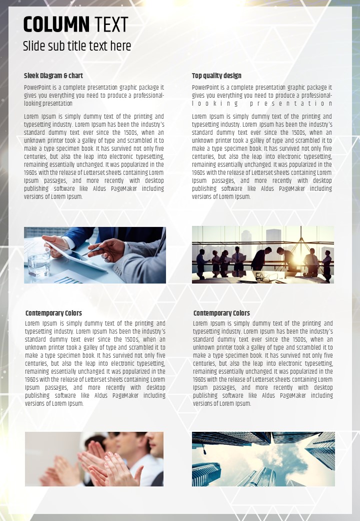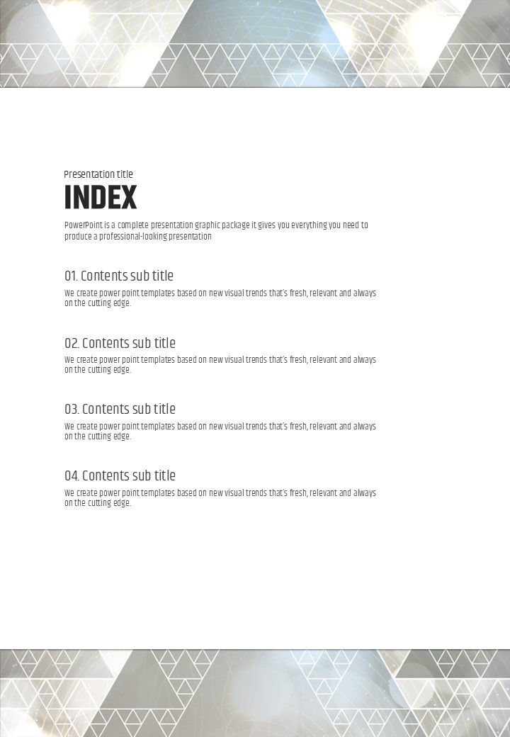 이 세로형 템플릿은 세련된 삼각형 패턴으로 구성되어 있으며, 비즈니스 프레젠테이션, 제안서, 보고서 작성에 적합합니다. 독창적인 디자인은 내용을 효과적으로 전달해 주목도를 높이며, 다양한 산업과 문서 유형에 유연하게 활용 가능합니다. 세련된 컬러 조합을 통해 정보의 가독성을 극대화하며, 창의적인 발표를 원하는 실무자와 스타트업 팀에 특히 추천합니다.